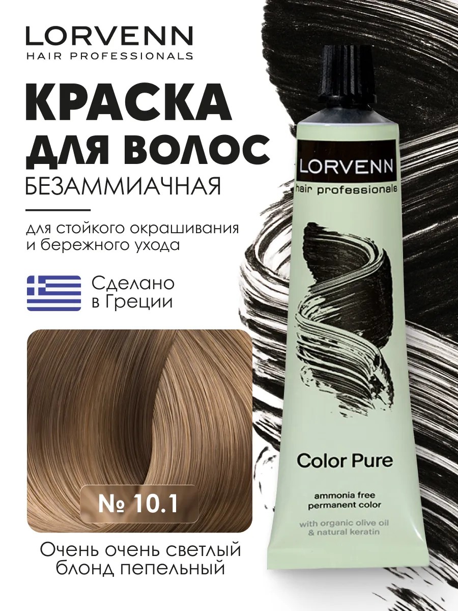 Lorvenn Краска для волос безаммиачная “Color Pure”, тон 10.1 - Крайне светлый блонд пепельный