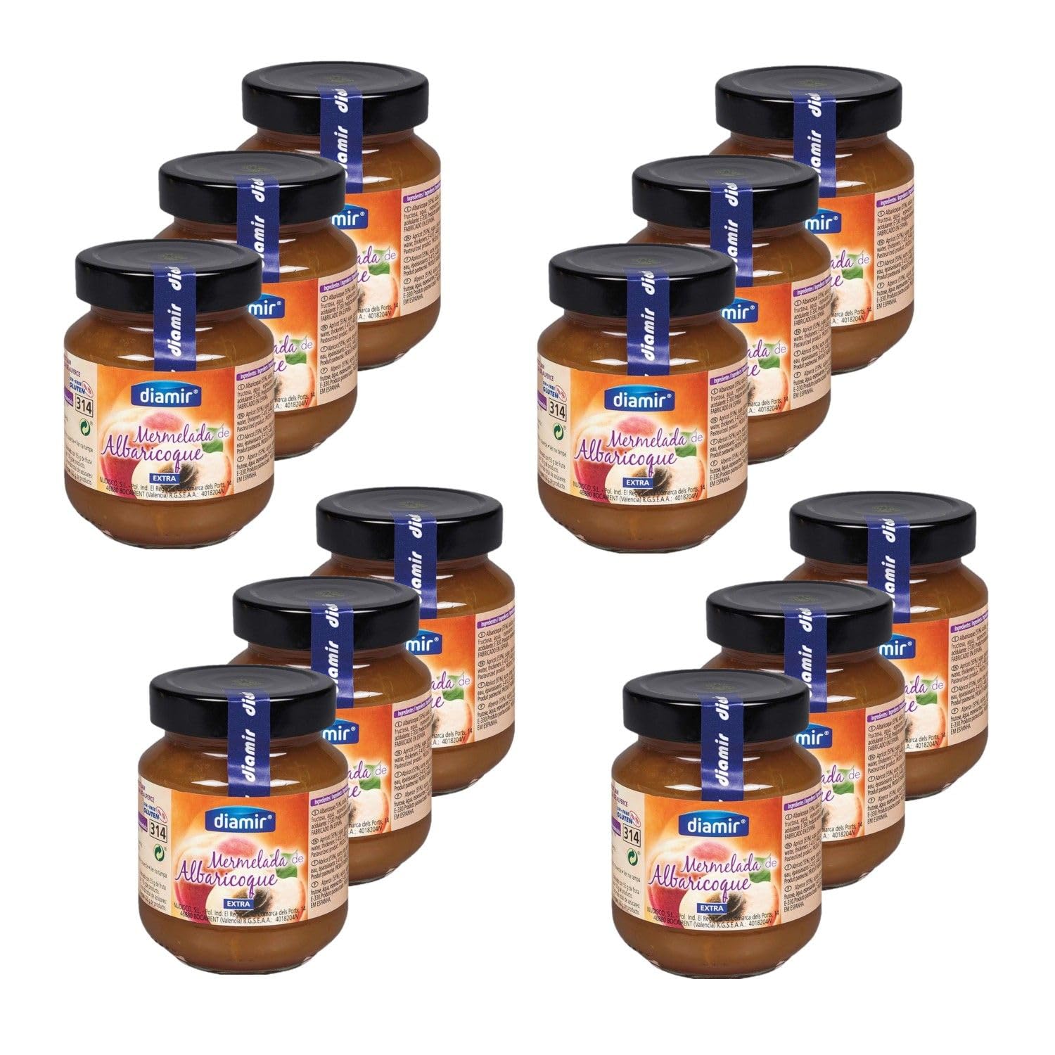 This lot contains 12 products described below: Diamir Apricot Jam delivers fruity flavors in every bite. Prepared with fresh, sweet apricots, this jam preserves the natural aroma and texture of the fruits. Ingredients : Apricot 50 , sugar, glucose and fructose syrup, water, thickener E-440, antioxidant E-300 AND E-330, preservative E-202. Allergens: None Storage method: Store at room temperature, away from heat and humidity before opening. Directions for use: Spread this jam generously on your toast, pancakes or waffles for a gourmet breakfast. It can also be used as a filling for pastries or mixed into yogurt for a fruity touch in your desserts. Product information: Net weight: 340g Origin: Spain Energy: 684KJ 161Kcal Lipids: 0g including 0g saturated fatty acids Carbohydrates: 39g including sugars 32g Protein: 0g Dietary fiber: NCg Salt: 0.03g Packaging: Glass Jar Full details available on the product packaging. The information on this page is for information purposes only. We encourage you to read the information on the product label, particularly regarding food allergies. INGREDIENTS Apricot 50 , sugar, glucose and fructose syrup, water, thickener E-440, antioxidant E-300 AND E-330, preservative E-202. SAFETY WARNING Full details available on the product packaging. The information on this page is for information purposes only. We encourage you to read the information on the product label, particularly regarding food allergies. Vegan - Cuisine: Spanish. Gluten-free Lactose-free Colorant-free. Made with 50g of fruit per 100g of product. Allergens: None. Ingredients: Apricot 50 , sugar, glucose and fructose syrup, water, thickener E-440, antioxidant E-300 and E-330, preservative E-202. Ce lot contient 12 produits décrits ci-dessous : La confiture d'abricot de Diamir offre des saveurs fruitées dans chaque bouchée. Préparée avec des acbricots frais et sucrés, cette confiture préserve l'arôme naturel et la texture des fruits. Ingrédients : Abricot 50 , sucre, sirop de glucose et fructose, eau, épaississant E-440, antioxydant E-300 ET E-330, conservateur E-202. Allergènes : Aucun Mode de conservation : A conserver à température ambiante, à l'abri de la chaleur et de l'humidité avant ouverture. Conseil d'utilisation : Étalez généreusement cette confiture sur vos tartines, crêpes ou gaufres pour un petit-déjeuner gourmand. Elle peut également être utilisée comme garniture pour des pâtisseries ou mélangée dans du yaourt pour une touche fruitée dans vos desserts. Informations produit : Poids net : 340g Origine : Espagne Energie : 684KJ 161Kcal Lipides : 0g dont acides gras saturés 0g Glucides : 39g dont sucres 32g Protéines : 0g Fibres alimentaires : NCg Sel : 0,03g Emballage : Pot en Verre Détail complet et disponible sur l'emballage du produit. Les informations présentes sur cette page sont à titre indicatif. Nous vous invitons à prendre connaissance des informations sur l'étiquette du produit, en particulier concernant les allergies alimentaires. INGRÉDIENTS Abricot 50 , sucre, sirop de glucose et fructose, eau, épaississant E-440, antioxydant E-300 ET E-330, conservateur E-202. AVERTISSEMENT DE SÛRETÉ Détail complet et disponible sur l'emballage du produit. Les informations présentes sur cette page sont à titre indicatif. Nous vous invitons à prendre connaissance des informations sur l'étiquette du produit, en particulier concernant les allergies alimentaires. Végan - Type de cuisine : Espagnole. Sans gluten Sans lactose Sans colorant. Elaboré avec 50g de fruit pour 100g de produit. Liste des allergènes : Aucun. Liste des ingrédients : Abricot 50 , sucre, sirop de glucose et fructose, eau, épaississant E-440, antioxydant E-300 ET E-330, conservateur E-202.