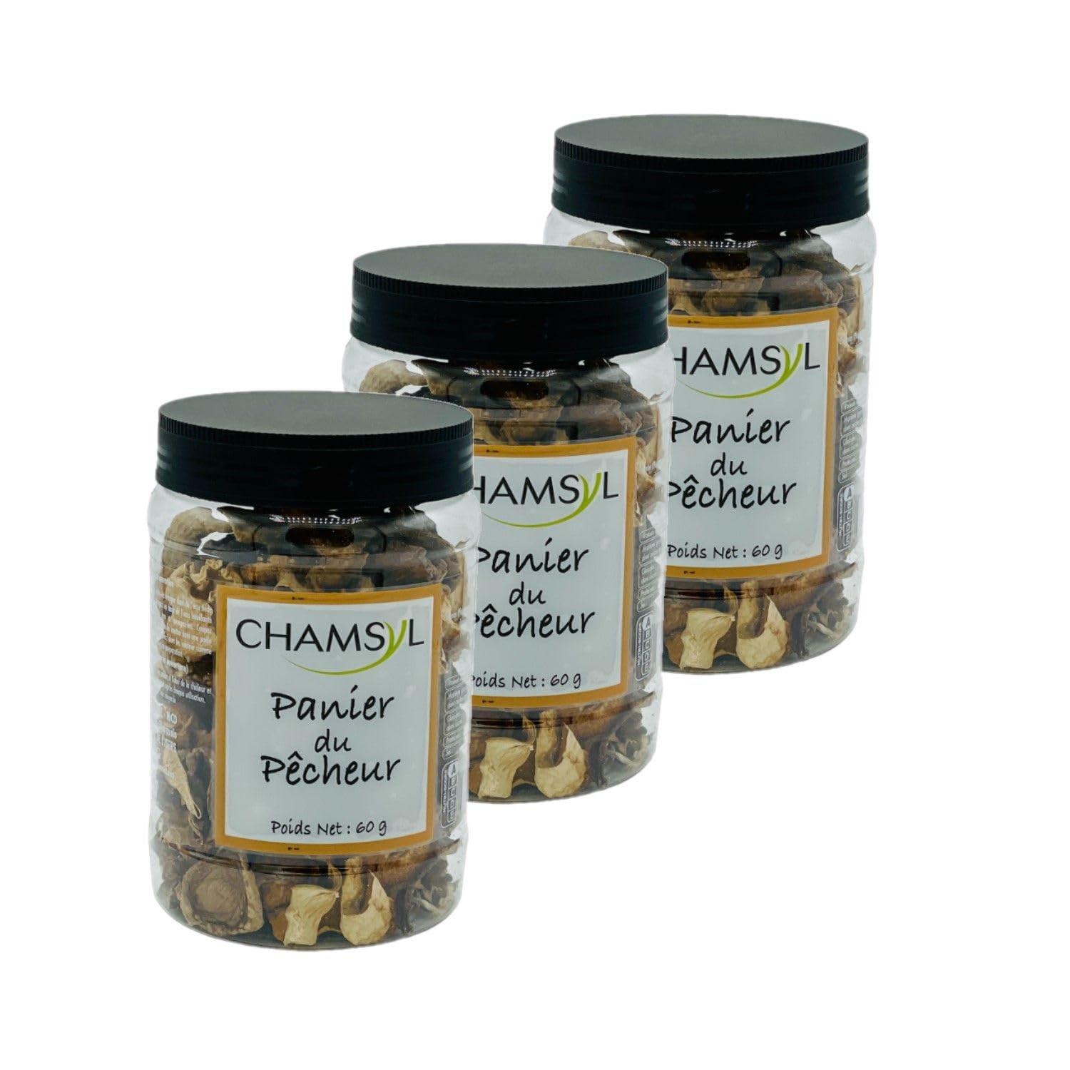 This lot contains 3 products described below: The fisherman's basket is a mixture of forest mushrooms selected and blended to offer a unique flavor and an enriching culinary experience. Sorted and packaged in France. Ingredients : Oyster mushroom, chanterelle, morel. Allergens: None Storage method: Store at room temperature, away from heat and humidity before opening. Directions for use: Soak the dried mushrooms in lukewarm water for at least 15 minutes. Drain them, then immerse them in boiling water for at least 10 minutes. Rinse them with plenty of water. Mushrooms can thus be incorporated into different preparations. Rehydration time may vary depending on the intensity of drying. Close tightly after each use. Product information: Net weight: 60g Origin: China Energy: NCKJ NCKcal Lipids: NCg including saturated fatty acids NCg Carbohydrates: NCg including NCg sugars Proteins: NCg Dietary fiber: NCg Salt: NCg Packaging: Plastic jar Full details available on the product packaging. The information on this page is for information purposes only. We encourage you to read the information on the product label, particularly regarding food allergies. INGREDIENTS Oyster mushroom, chanterelle, morel. SAFETY WARNING Full details available on the product packaging. The information on this page is for information purposes only. We encourage you to read the information on the product label, particularly regarding food allergies. Vegan - Cuisine type: French. Gluten-free Lactose-free No added sugar No preservatives No coloring. Resealable and airtight jar. List of allergens: None. List of ingredients: Oyster mushroom, chanterelle, morel. Ce lot contient 3 produits décrits ci-dessous : Le panier du pêcheur est un mélange de champignons forestiers sélectionnés et mélangés pour offrir une saveur unique et une expérience culinaire enrichissante. Trié et conditionné en France. Ingrédients : Pleurote, girolle, morille. Allergènes : Aucun Mode de conservation : A conserver à température ambiante, à l'abri de la chaleur et de l'humidité avant ouverture. Conseil d'utilisation : Faire tremper les champignons secs dans l'eau tiède pendant au moins 15 minutes. Les égoutter, puis les plonger dans l'eau bouillante au minimum 10 minutes. Les rincer à grande eau. Les champignons peuvent être ainsi incorporés aux différentes préparations. Le temps de réhydratation peut varier selon l'intensité du séchage. Bien refermer après chaque utilisation. Informations produit : Poids net : 60g Origine : Chine Energie : NCKJ NCKcal Lipides : NCg dont acides gras saturés NCg Glucides : NCg dont sucres NCg Protéines : NCg Fibres alimentaires : NCg Sel : NCg Emballage : Pot en Plastique Détail complet et disponible sur l'emballage du produit. Les informations présentes sur cette page sont à titre indicatif. Nous vous invitons à prendre connaissance des informations sur l'étiquette du produit, en particulier concernant les allergies alimentaires. INGRÉDIENTS Pleurote, girolle, morille. AVERTISSEMENT DE SÛRETÉ Détail complet et disponible sur l'emballage du produit. Les informations présentes sur cette page sont à titre indicatif. Nous vous invitons à prendre connaissance des informations sur l'étiquette du produit, en particulier concernant les allergies alimentaires. Végan - Type de cuisine : Française. Sans gluten Sans lactose Sans sucre ajouté Sans conservateur Sans colorant. Pot refermable et hermétique. Liste des allergènes : Aucun. Liste des ingrédients : Pleurote, girolle, morille.