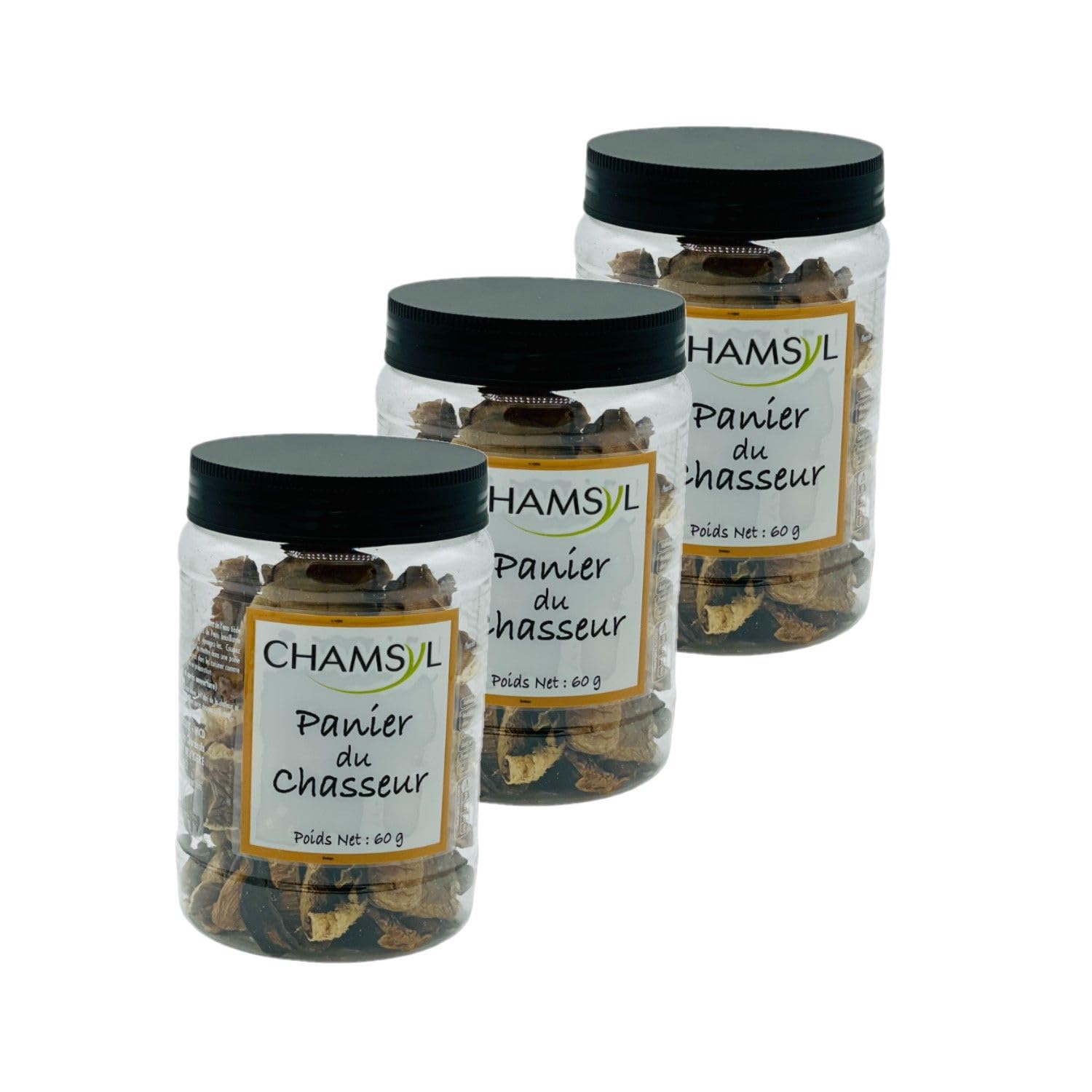 This lot contains 3 products described below: The hunter's basket is a mixture of forest mushrooms selected and blended to offer a unique flavor and an enriching culinary experience. Sorted and packaged in France. Ingredients : Porcini mushroom, oyster mushroom, black mushroom, shii-také, milkweed. Allergens: None Storage method: Store at room temperature, away from heat and humidity before opening. Directions for use: Soak the dried mushrooms in lukewarm water for at least 15 minutes. Drain them, then immerse them in boiling water for at least 10 minutes. Rinse them with plenty of water. Mushrooms can thus be incorporated into different preparations. Rehydration time may vary depending on the intensity of drying. Close tightly after each use. Product information: Net weight: 60g Origin: China Energy: NCKJ NCKcal Lipids: NCg including saturated fatty acids NCg Carbohydrates: NCg including NCg sugars Proteins: NCg Dietary fiber: NCg Salt: NCg Packaging: Plastic jar Full details available on the product packaging. The information on this page is for information purposes only. We encourage you to read the information on the product label, particularly regarding food allergies. INGREDIENTS Porcini mushroom, oyster mushroom, black mushroom, shii-také, milkweed. SAFETY WARNING Full details available on the product packaging. The information on this page is for information purposes only. We encourage you to read the information on the product label, particularly regarding food allergies. Vegan - Cuisine type: French. Gluten-free Lactose-free No added sugar No preservatives No coloring. Resealable and airtight jar. List of allergens: None. List of ingredients: Cep, oyster mushroom, black mushroom, shii-take, milk cap. Ce lot contient 3 produits décrits ci-dessous : Le panier du chasseur est un mélange de champignons forestiers sélectionnés et mélangés pour offrir une saveur unique et une expérience culinaire enrichissante. Trié et conditionné en France. Ingrédients : Cèpe, pleurote, champignon noir, shii-také, lactaire. Allergènes : Aucun Mode de conservation : A conserver à température ambiante, à l'abri de la chaleur et de l'humidité avant ouverture. Conseil d'utilisation : Faire tremper les champignons secs dans l'eau tiède pendant au moins 15 minutes. Les égoutter, puis les plonger dans l'eau bouillante au minimum 10 minutes. Les rincer à grande eau. Les champignons peuvent être ainsi incorporés aux différentes préparations. Le temps de réhydratation peut varier selon l'intensité du séchage. Bien refermer après chaque utilisation. Informations produit : Poids net : 60g Origine : Chine Energie : NCKJ NCKcal Lipides : NCg dont acides gras saturés NCg Glucides : NCg dont sucres NCg Protéines : NCg Fibres alimentaires : NCg Sel : NCg Emballage : Pot en Plastique Détail complet et disponible sur l'emballage du produit. Les informations présentes sur cette page sont à titre indicatif. Nous vous invitons à prendre connaissance des informations sur l'étiquette du produit, en particulier concernant les allergies alimentaires. INGRÉDIENTS Cèpe, pleurote, champignon noir, shii-také, lactaire. AVERTISSEMENT DE SÛRETÉ Détail complet et disponible sur l'emballage du produit. Les informations présentes sur cette page sont à titre indicatif. Nous vous invitons à prendre connaissance des informations sur l'étiquette du produit, en particulier concernant les allergies alimentaires. Végan - Type de cuisine : Française. Sans gluten Sans lactose Sans sucre ajouté Sans conservateur Sans colorant. Pot refermable et hermétique. Liste des allergènes : Aucun. Liste des ingrédients : Cèpe, pleurote, champignon noir, shii-také, lactaire.