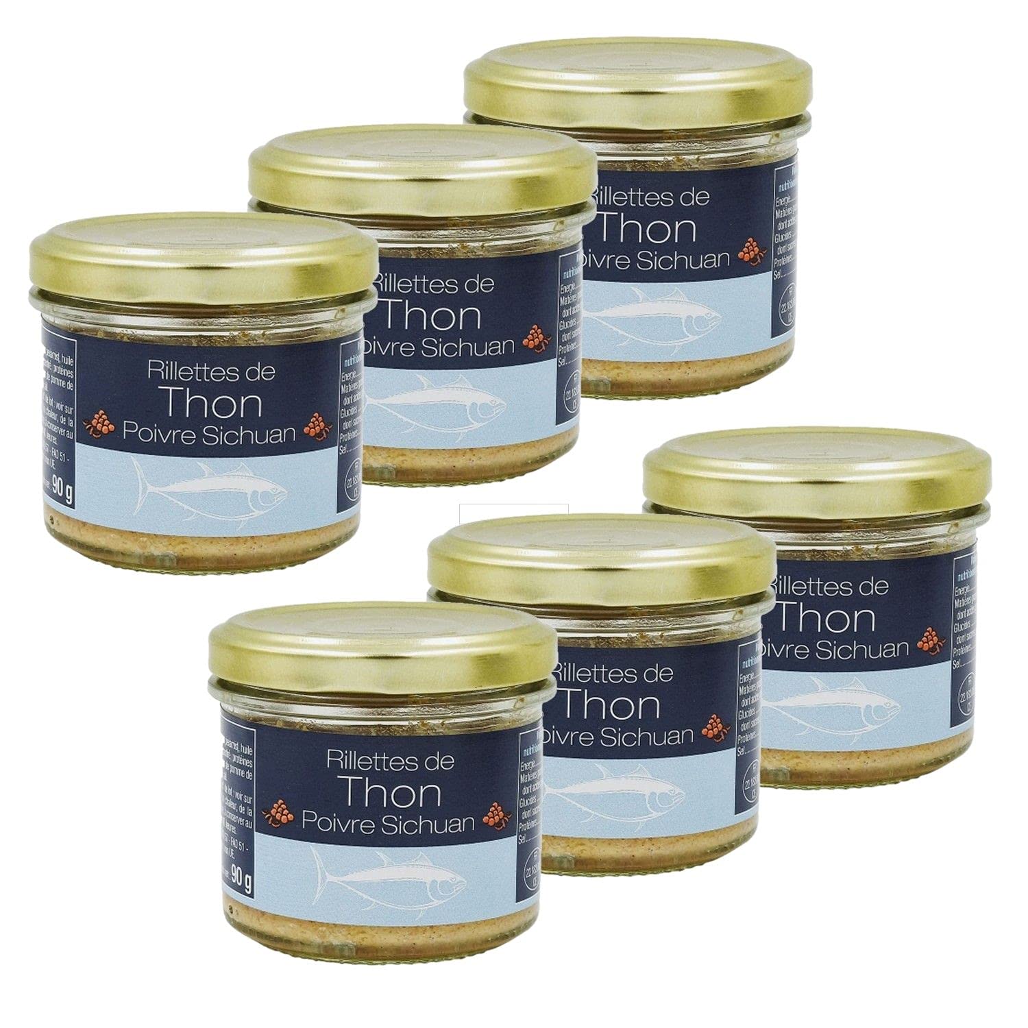This lot contains 6 products described below: An original tuna rillette recipe to share with your friends as an aperitif. Ingredients : Tuna, rapeseed oil, water, lemon juice from concentrate, MILK proteins, EGG white powder, salt, potato fibers, pepper, garlic. Allergens: Milk Egg Fish Storage method: Store at room temperature, away from heat and humidity before opening. Directions for use: To spread for your aperitifs. Product information: Net weight: 90g Origin: France Nutritional values per 100g: Energy: 1192KJ 288Kcal Lipids: 25g including saturated fatty acids 1.7g Carbohydrates: 0.7g including sugars 0.5g Protein: 15g Dietary fiber: 0g Salt: 0.68g Packaging: Glass Jar Full details available on the product packaging. The information on this page is for information purposes only. We encourage you to read the information on the product label, particularly regarding food allergies. INGREDIENTS Tuna, rapeseed oil, water, lemon juice from concentrate, MILK proteins, EGG white powder, salt, potato fibers, pepper, garlic. SAFETY WARNING Full details available on the product packaging. The information on this page is for information purposes only. We encourage you to read the information on the product label, particularly regarding food allergies. - Type of cuisine: French. Gluten-free No added sugar No added sugar No preservatives No coloring. Original recipe for Sichuan pepper rillettes. List of allergens: Milk Egg Fish. List of ingredients: Tuna, rapeseed oil, water, lemon juice from concentrate, MILK proteins, EGG white powder, salt, potato fiber, peppers, garlic. Ce lot contient 6 produits décrits ci-dessous : Une recette originale de rillette de thon à partager avec vos amis à l'apéritif. Ingrédients : Thon, huile de colza, eau, jus de citron à base de concentré, protéines de LAIT, poudre de blanc d'OEUF, sel, fibres de pommes de terre, poivres, ail. Allergènes : Lait Œuf Poisson Mode de conservation : A conserver à température ambiante, à l'abri de la chaleur et de l'humidité avant ouverture. Conseil d'utilisation : A tartiner pour vos apéritifs. Informations produit : Poids net : 90g Origine : France Valeurs nutritionnelles pour 100g : Energie : 1192KJ 288Kcal Lipides : 25g dont acides gras saturés 1,7g Glucides : 0,7g dont sucres 0,5g Protéines : 15g Fibres alimentaires : 0g Sel : 0,68g Emballage : Pot en Verre Détail complet et disponible sur l'emballage du produit. Les informations présentes sur cette page sont à titre indicatif. Nous vous invitons à prendre connaissance des informations sur l'étiquette du produit, en particulier concernant les allergies alimentaires. INGRÉDIENTS Thon, huile de colza, eau, jus de citron à base de concentré, protéines de LAIT, poudre de blanc d'OEUF, sel, fibres de pommes de terre, poivres, ail. AVERTISSEMENT DE SÛRETÉ Détail complet et disponible sur l'emballage du produit. Les informations présentes sur cette page sont à titre indicatif. Nous vous invitons à prendre connaissance des informations sur l'étiquette du produit, en particulier concernant les allergies alimentaires. - Type de cuisine : Française. Sans gluten Sans sucre ajouté Sans sucre ajouté Sans conservateur Sans colorant. Recette originiale de rillette au poivre Sichuan. Liste des allergènes : Lait Œuf Poisson. Liste des ingrédients : Thon, huile de colza, eau, jus de citron à base de concentré, protéines de LAIT, poudre de blanc d'OEUF, sel, fibres de pommes de terre, poivres, ail.
