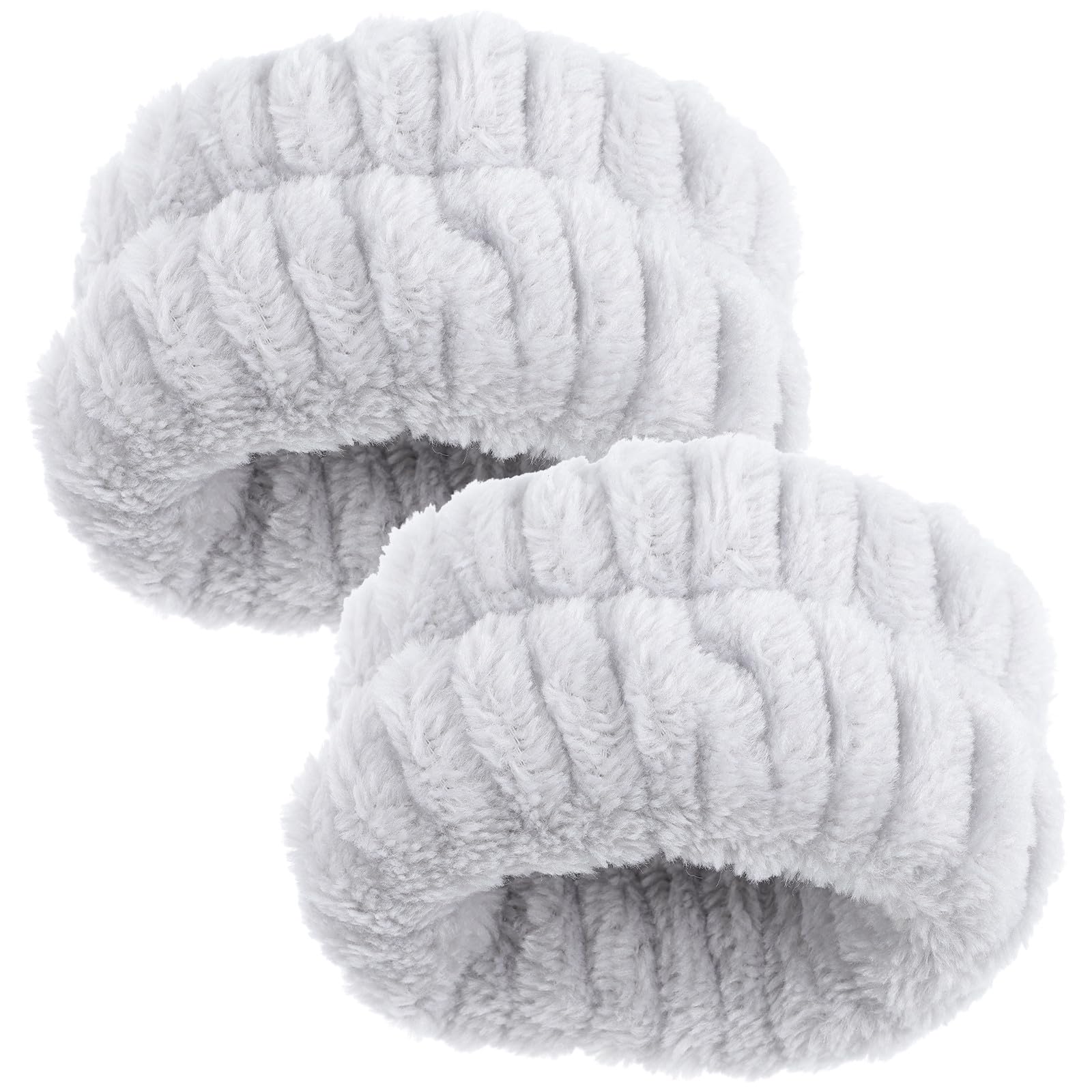Lot de 2 Bracelets en Flanelle Absorbante pour Lavage du Visage et Spa, Couleur Grise, Taille Ajustable, Bracelets Poignet Doux pour Yoga, Soins Peau et Usage Quotidien