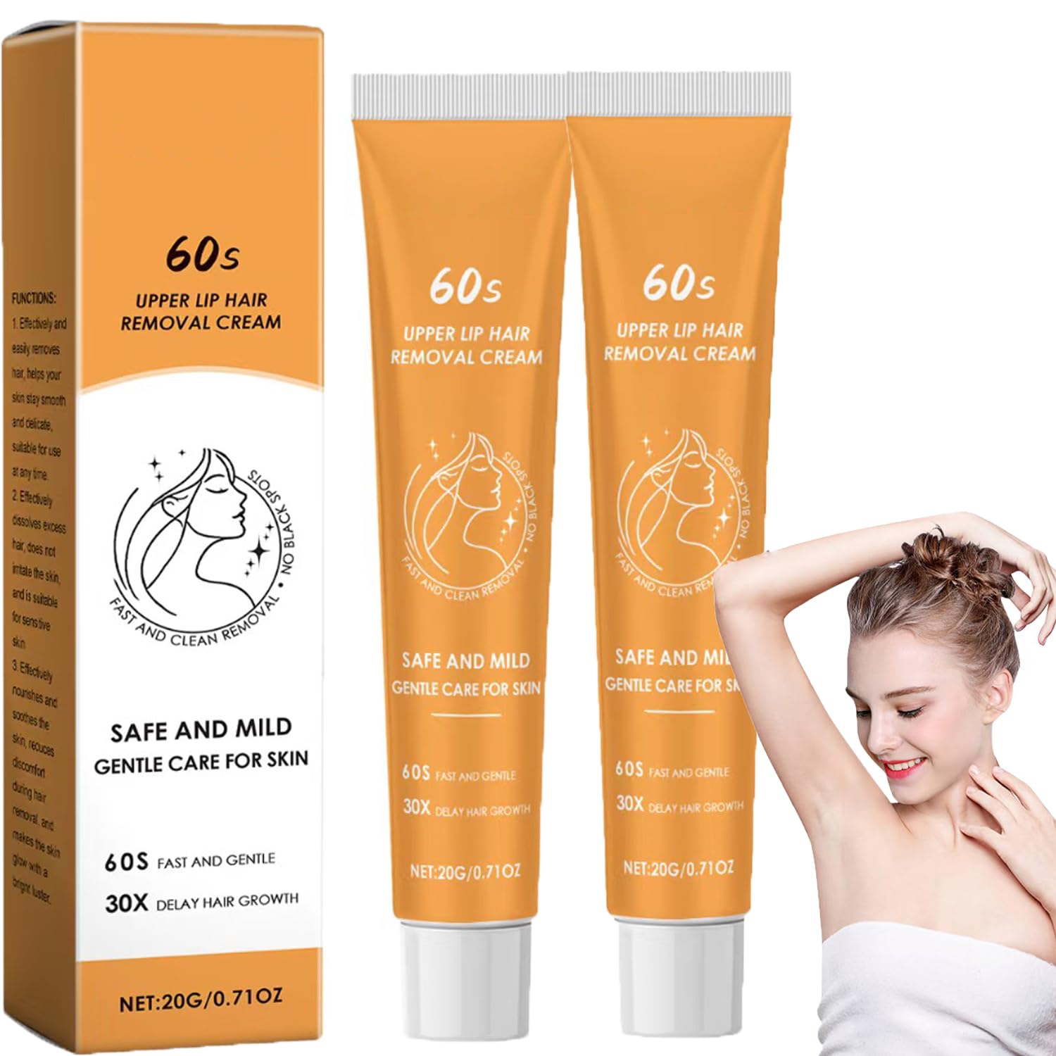 Lot de 2 crèmes d'épilation pour le visage pour femme, pour peaux sensibles, épilation de la lèvre supérieure, sans douleur et douce pour le visage et le corps, pour tous les types de peau 2 pièces.