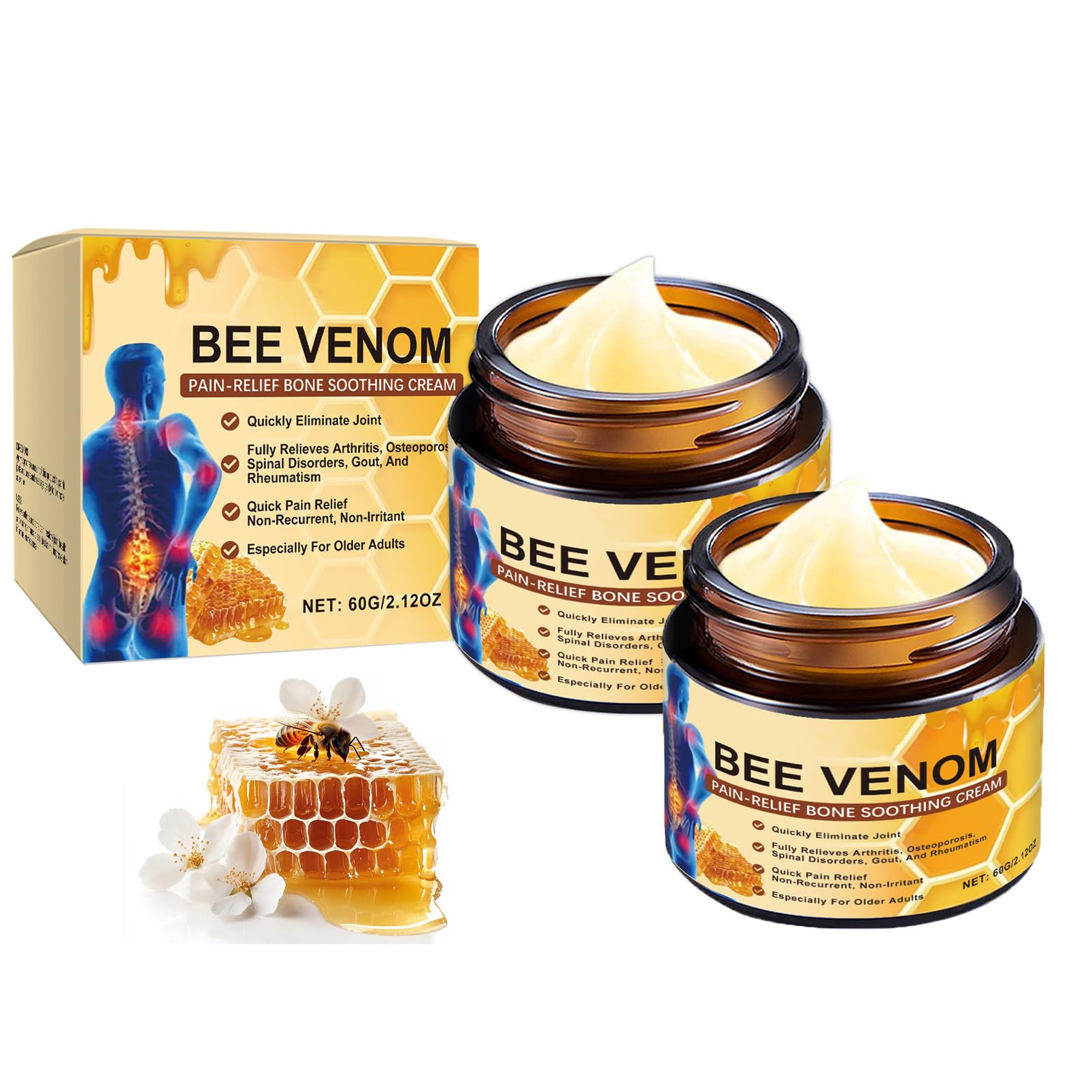 Lot de 2 crèmes venomisantes à l'abeille, pour genoux, dos, nuque, mains, nutrition profonde, apaisant, gel de soulagement des articulations