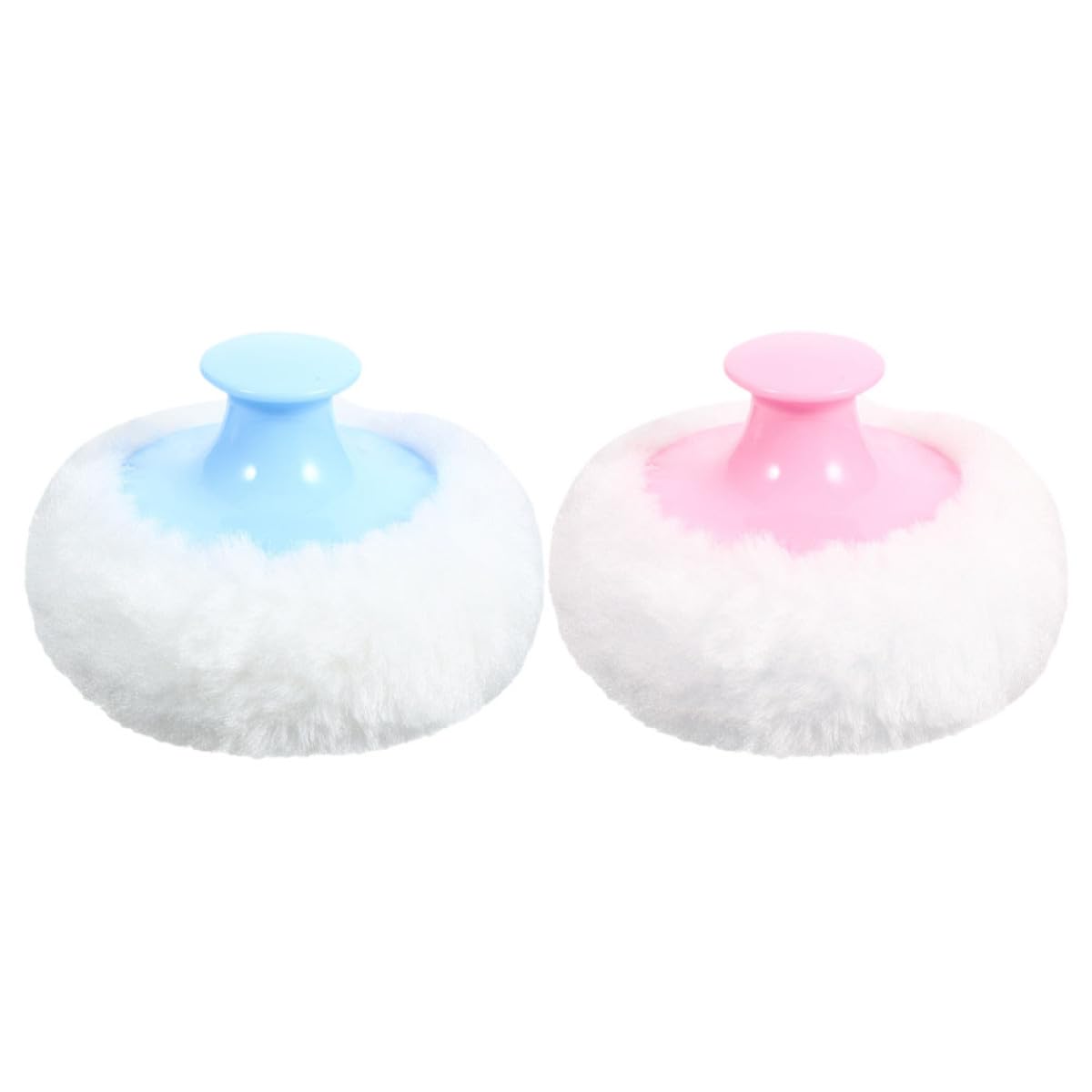 Lot de 2 Houppettes à Poudre Bébé 8 CM Ultra Douces en Peluche Applicateurs Réutilisables pour Poudre de et Soins Peau Délicate Couleurs Bleu Clair et Rose Pâle Usage