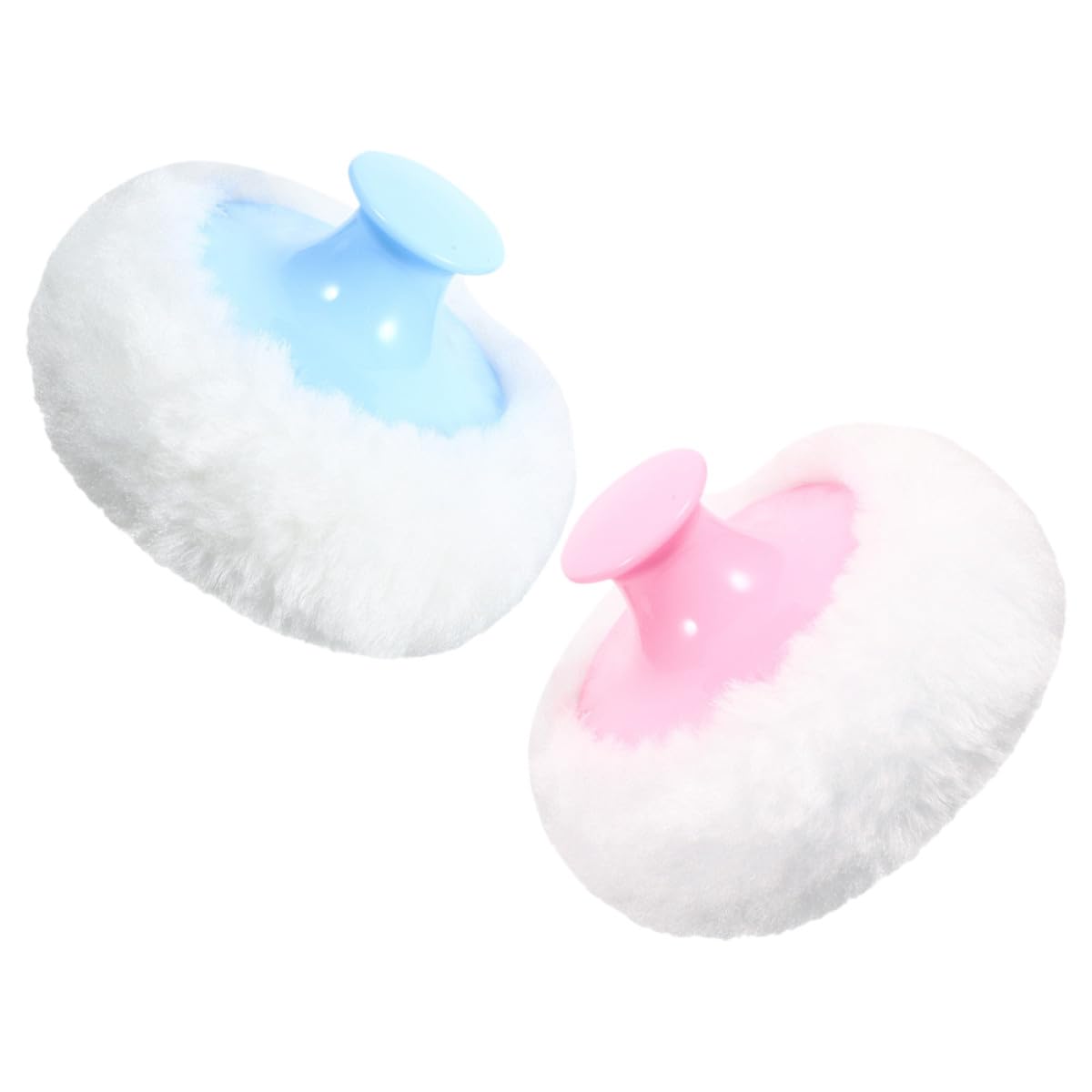 Lot de 2 Houppettes pour Poudre Corporelle Bébé 8 CM Ultra Douces en Peluche Applicateurs Réutilisables Bleu Clair et Rose Clair pour Soins Bébé et Usage Voyage