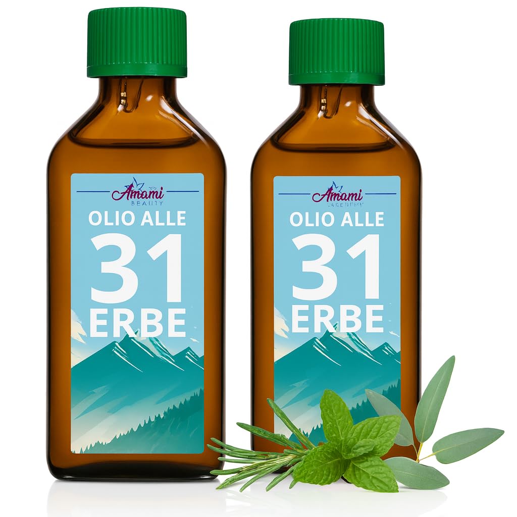 : Herbal Oil 31. This oil helps relieve colds and headaches. Composed of precious essential oils, it offers numerous beneficial effects. Useful for massages before and after physical activity. It has a balsamic, relaxing, pain-relieving, and anti-dandruff effect on the scalp, and is refreshing for the feet. It also perfumes the environment. Paraffin-free, paraben-free, and alcohol-free. With 31 herbs Format: 100 ml Ingredients Prunus Amigdalus Dulcis oil, Mentha Arvensis herb oil, eucalyptus, globulus leaf oil, pinus sylvestris leaf oil, limonene, citrus sinensis peel oil expressed, illicium verum fruit seed oil, lavandula augustifolia, herb oil, herb oil, foeniculum vulgare dulce fruit oil, cinnamomum camphora lead oil, linalool, ocimum basilicum herb oil, juniperus communis fruit oil, melissa officinalis leaf oil, sage officinalis oil, melaleuca leucadendron, cajaputi leaf oil, pinus mugo pumilio twif leaf oil, cinamomil, cinamomo. um zeylani cum bark oil, rosparinus officinalis leaf oil, citral, cinnamal, citrus citron fruit oil, coriandrum satiyum seed oil, thymus vulgaris, melaleuca viridiflora leaf oil, carum carvi fruit oil, cymbopogon winterianus herb oil, eugenia caryophyllus bud oil, garlic, garlic, garlic, garlic, garlic, garlic, garlic, apie garlic, garlic, garlic, apie um graveolens seed oil, artemisia vulgaris oil, eugenol, geraniol, citronellol, matricaria recutita flower oil, commiphora myrrha gum oil, myrustuca fragrans fruit oil, valilin, styrax benzoin gum extract, anethum graveolens seed oil, iris florentina root extract, goultheria procumbmbmbmbmbmbmbmbmbmbmbmbmbmbmbmbmbmbmbmbmbmbmbmbmb. ens leaf Ingredients Prunus Amigdalus Dulcis oil, Mentha Arvensis herb oil, eucalyptus, globulus leaf oil, pinus sylvestris leaf oil, limonene, citrus sinensis peel oil expressed, illicium verum fruit seed oil, lavandula augustifolia, herb oil, foeniculum vulgare dulce fruit oil, nullce oil, nullce fruit oil, cinoil, cinoil, nullce fruit oil, cinoil, nullce amomum camphphore Oil Lead Oil, Linalool, ocimum basilicum herb oil, juniperus communis fruit oil, melissa officinalis leaf oil, sage officinalis oil, melaleuca leucadendron, cajaputi leaf oil, pinus mugo pumilio twif leaf oil, cinamomum zeylanicum bark oil, rosparinus officinalis leaf oil, citral, cinnamal, citrus lemon fruit oil, coriandrum satiyum seed oil, thymus vulgaris, melaleuca viridiflora leaf oil, carum carvi fruit oil, cymbopogon winterianus herb oil, eugenia caryophyllus bud oil, apium graveolens seed oil, artemisia vulga. aris oil, eugenène ol, geraniol, citronellol, matricaria recutita flower oil, commiphora myrrha gum oil, myrustuca fragrans fruit oil, valilin, styrax benzoin gum extract, anethum graveolens seed oil, iris florentina root extract, goultheria procumbens leaf P.when('A').execute(function(A) { A.on('a:expander:toggle_description:toggle:collapse', function(data) { window.scroll(0, data.expander. expander[0].offsetTop-100) }) Directions: Apply a small amount of oil to the desired area, massage, and repeat if necessary. To relieve headaches, apply to the temples and forehead. Safety Warning: May cause skin irritation in some people. Keep out of reach of children. store in a cool, dry place. Do not swallow. In case of contact with eyes, rinse thoroughly with water. See moreParaffin-free, paraben-free, and alcohol-free. Balsamic, relaxing, pain-relieving, and anti-dandruff for the scalp refreshing for the feet and pleasant for the environment. Useful for massages before and after physical activity. Helps relieve colds and headaches. Contents: 2 Amami Beauty Herbal Oils (31).Description du produit Huile 31 aux herbes. Elle contribue à soulager le rhume et les maux de tête, composée d'huiles essentielles précieuses, avec de nombreux effets bénéfiques. Utile pour les massages avant et après l'effort physique. Effet balsamique, relaxant, anti-douleur, antipelliculaire sur le cuir chevelu, rafraîchissant pour les pieds, ainsi que pour parfumer l'environnement sans paraffine, sans paraben et sans alcool. Avec 31 herbes Format : 100 ml Ingrédients Prunus Amigdalus Dulcis oil, Mentha Arvensis herb oil, eucalyptus, globulus leaf oil, pinus sylvestris leaf oil, limonène, citrus sinensis peel oil expressed, illicium verum fruit seed oil, lavandula augustifolia, herb oil, herb oil, foeniculum vulgare dulce fruit oil, cinnamomum camphora lead oil, linalool, ocimum basilicum herb oil, juniperus communis fruit oil, melissa officinalis leaf oil, sauge officinalis oil, melaleuca leucadendron, cajaputi leaf oil, pinus mugo pumilio twif leaf oil, cinamomil, cinamomo. um zeylani cum bark oil, rosparinus officinalis leaf oil, citral, cinnamal, citrus citron fruit oil, coriandrum satiyum seed oil, thymus vulgaris , melaleuca viridiflora leaf oil, carum carvi fruit oil, cymbopogon winterianus herb oil, eugenia caryophyllus bud oil, ail, ail, ail, ail, ail, ail, ail, apie ail, ail, ail, apie um graveolens seed oil, artemisia vulgaris oil, eugenol, géraniol, citronellol, matricaria recutita flower oil, commiphora myrrha gum oil, myrustuca fragrans fruit oil, valilin, styrax benzoin gum extract, anethum graveolens seed oil, iris florentina root extract, goultheria procumbmbmbmbmbmbmbmbmbmbmbmbmbmbmbmbmbmbmbmbmbmbmbmb. ens leaf Ingrédients Prunus Amigdalus Dulcis oil, Mentha Arvensis herb oil, eucalyptus, globulus leaf oil, pinus sylvestris leaf oil, limonène, citrus sinensis peel oil expressed, illicium verum fruit seed oil, lavandula augustifolia, herb oil, foeniculum vulgare dulce fruit oil, nulce oil, nulce fruit oil, cinoil, cinoil, nulce fruit oil, cinoil, nulce amomum camphphore Oil Lead Oil, Linalool, ocimum basilicum herb oil, juniperus communis fruit oil, melissa officinalis leaf oil, sauge officinalis oil, melaleuca leucadendron, cajaputi leaf oil, pinus mugo pumilio twif leaf oil, cinamomum zeylanicum bark oil, rosparinus officinalis leaf oil, citral, cinnamal, citrus citron fruit oil, coriandrum satiyum see