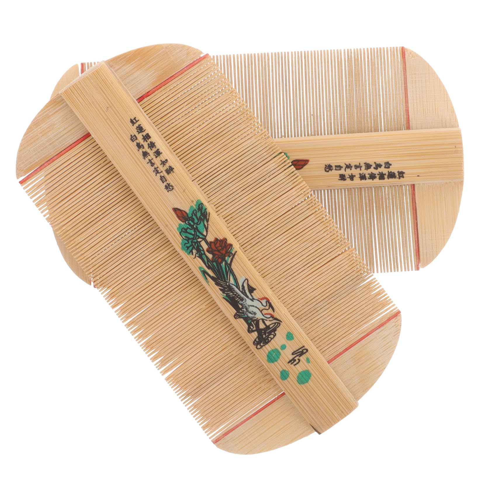 Lot de 2 Peignes à Dents Denses en Bambou Antipelliculaire Double Face, Léger et Portable, Massage Cuir Chevelu, Soin Cheveux et Anti-poux pour Garçon et Filles et Style Aléatoire