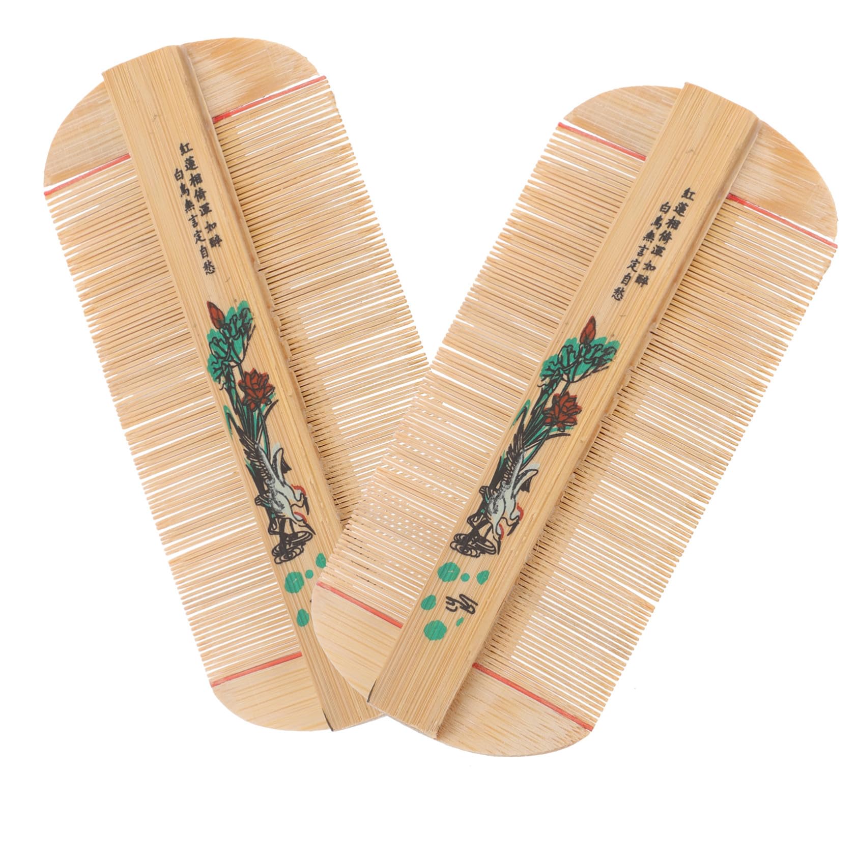 Lot de 2 Peignes à Dents Denses en Bambou Double Face, Soins Capillaires Doux et Faciles à Transporter pour Éliminer Pellicules et Poux