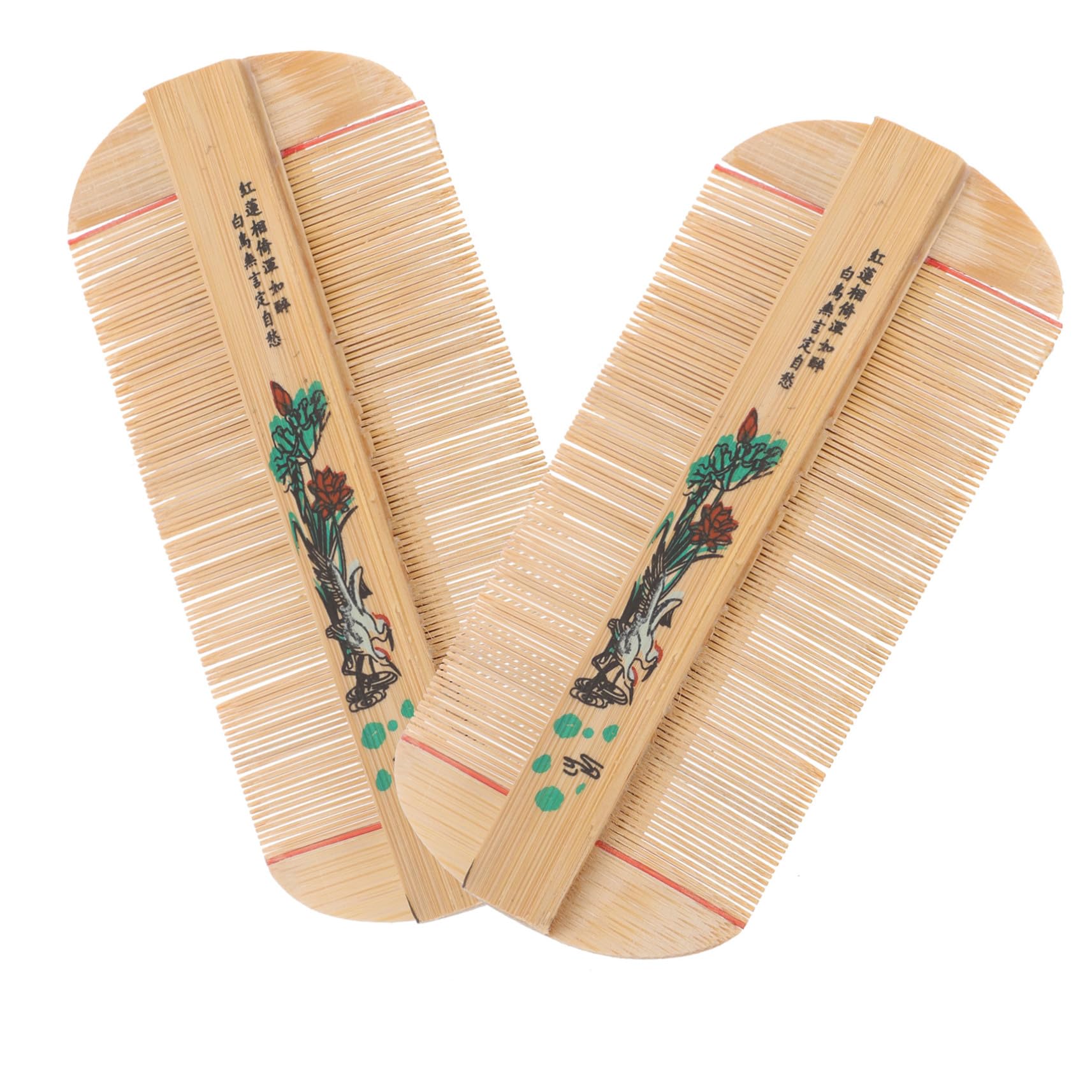 Lot de 2 Peignes à Dents Doubles en Bambou Dense, Peignes Antipelliculaires Naturels pour Maison, Outil Multifonction pour Démêler et Massage Cuir Chevelu, Usage Style Aléatoire