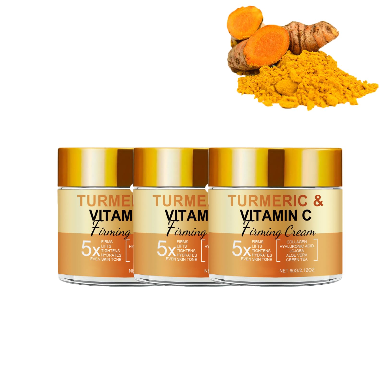 Lot de 3 crèmes pour le visage au curcuma - Vitamine C - Éclaircissement naturel pour les taches brunes - Hyperpigmentation - Booster anti-âge avec 30 de vitamine C - Équilibre le teint de la peau 3 pièces.