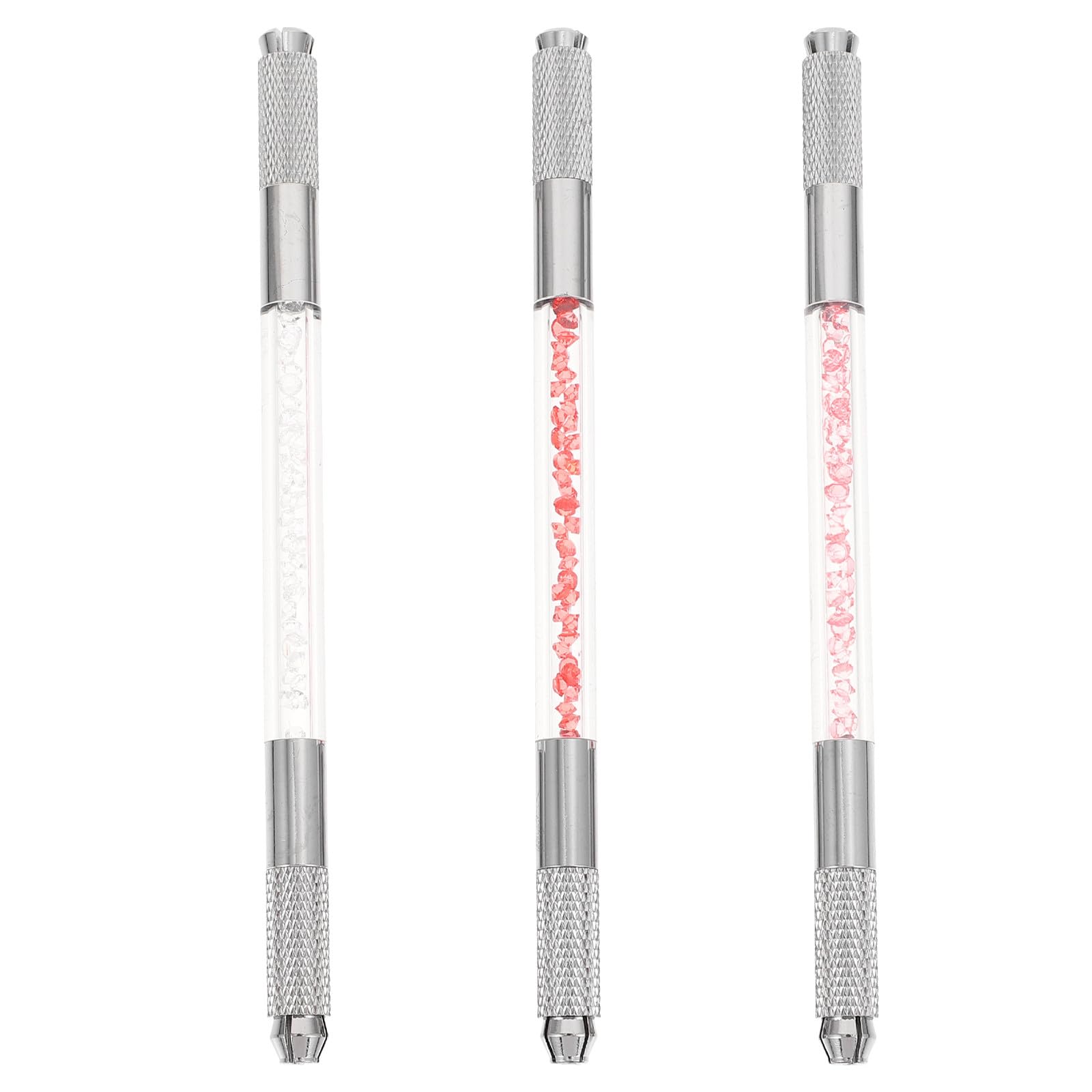 Lot de 3 Stylos à Sourcils Double Tête en Cristal Outils Manuels pour Microblading Stylo Tatouage Couleurs Assorties Adaptés pour Broderie des Sourcils et Maquillage