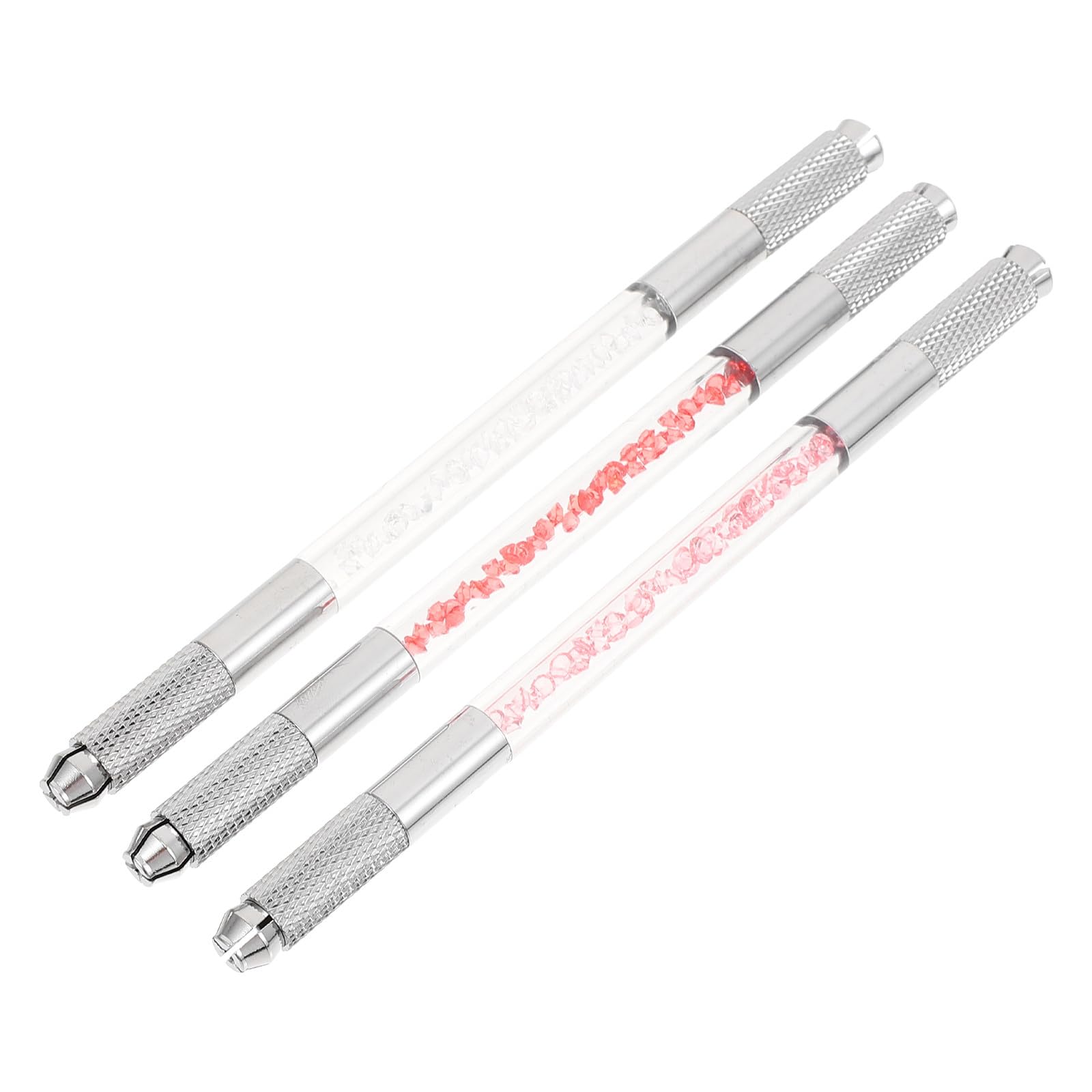 Lot de 3 Stylos à Sourcils Double Tête Multifonction Manches en Cristal Couleurs Assorties Outil Manuel pour Tatouage et Broderie des Sourcils Usage Professionnel