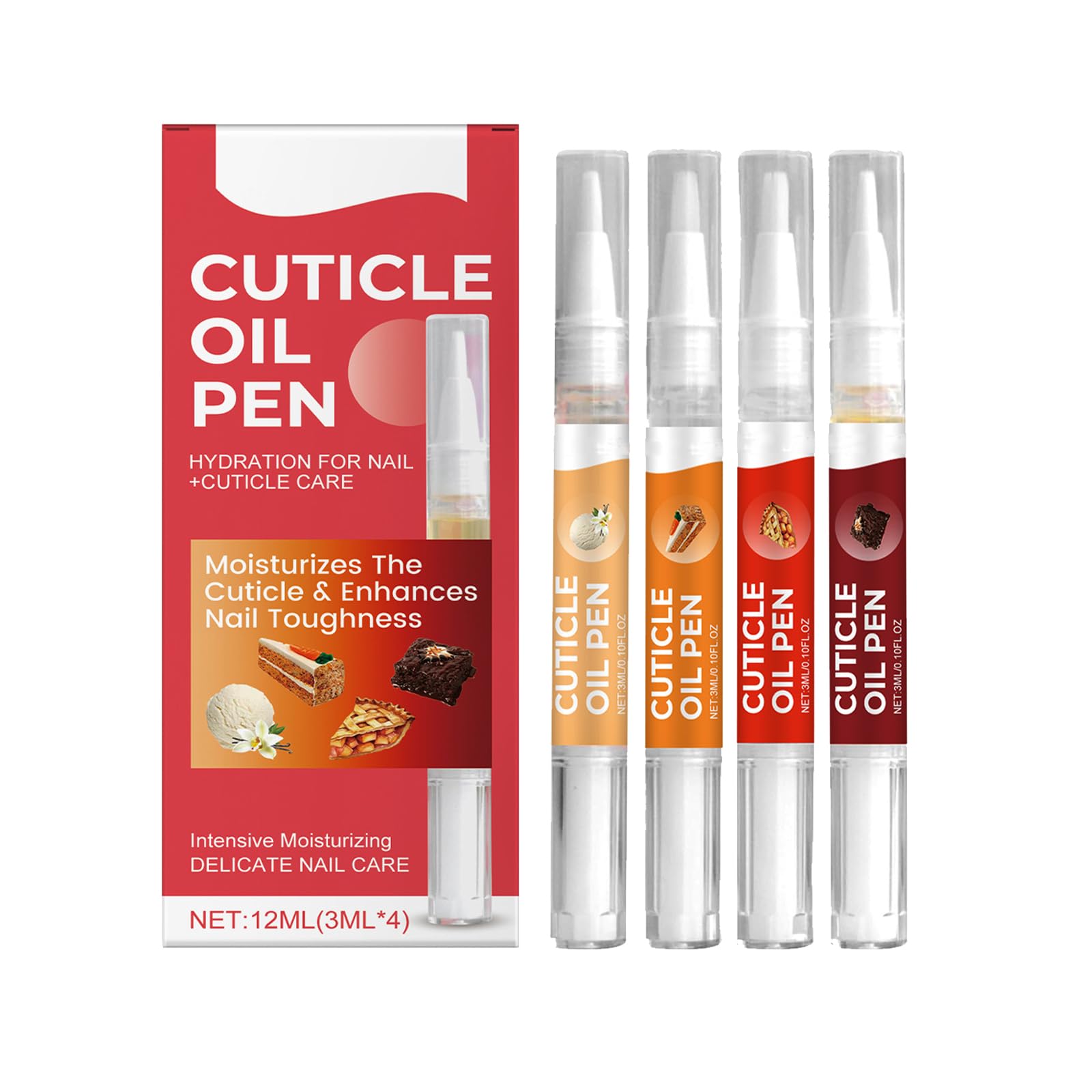 Gift idea: Oil pens for women, mothers, sisters, daughters, friends, and teenagers. Perfect gift for everyday use and holidays, such as birthdays, Mother's Day, Valentine's Day, Easter, Thanksgiving, Christmas, and New Year's. Protect your nails: Cuticle care pen to reduce dryness, cracking, stunted growth, and brittle nails, and prevent nail loss. It is especially recommended to keep a few cuticle oil pens on hand to protect your nails. Premium effect: Nail repair oil. Gently massage to promote absorption and stimulate blood circulation in the fingers. Recommended 3 to 4 times a week for longer, stronger, and more natural-looking nails. Close the cap after use. Safe ingredients: Moisturizing cuticle oil made from natural, plant-derived ingredients, rich in fruity ingredients that hydrate and nourish cuticles. The scent is mild and not overpowering. Protect your nails: 4 cuticle oils, you can use it with a nail care stick to better take care of your cuticles and nails.
