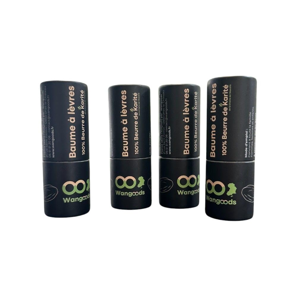 Lot de 4 Baumes à Lèvres Naturels - 100 Beurre de Karité Pur - Hydratation Intense - 7g l'unité - Soin des Lèvres Secs et Abîmés - Produit Éthique Wangoods