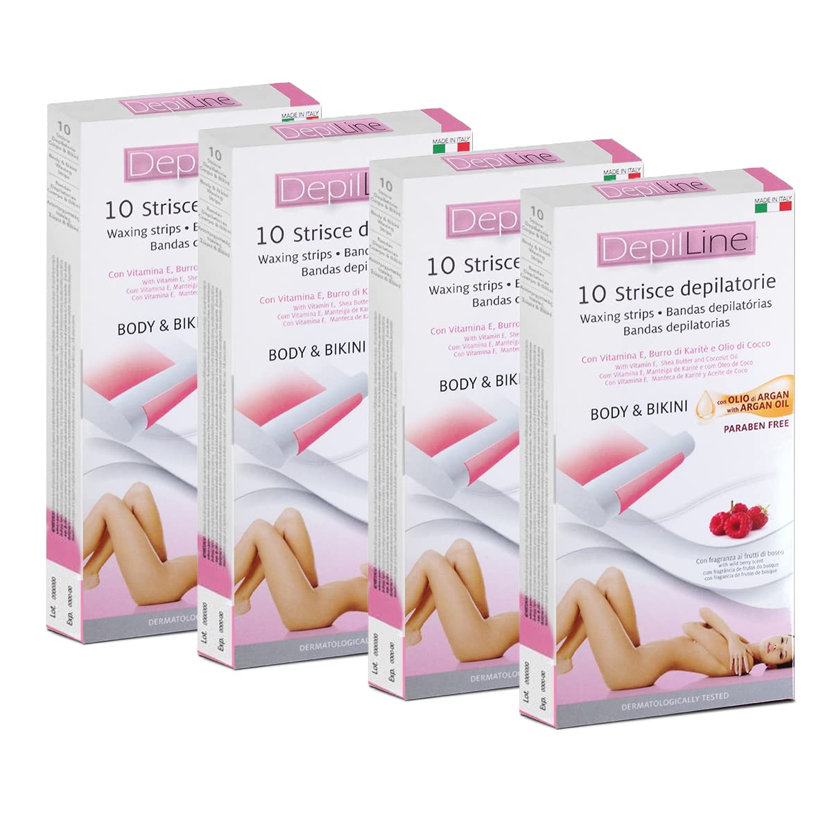 Specially designed for body hair removal, underarms, bikini line, etc. Contains natural beeswax, organic argan oil, and is enriched with vitamin E. Ready to use. Made from a non-textile fabric, it effectively and quickly removes even short hairs. Thanks to the antioxidant action of vitamin E, shea butter, and coconut oil, known for their emollient and soothing properties, these waxing strips, enriched with a forest fruit fragrance, leave skin soft and pleasantly scented. Ensure the area to be waxed is clean and dry. Apply in the direction of hair growth to ensure the wax strip adheres. Paraben-free. Dermatologically tested. Weight: 0.4 kgWeight: 0.4 kg. Dermatologically tested product. Ensure the area to be waxed is clean and dry. Apply in the direction of hair growth to ensure the wax strip adheres. Thanks to the antioxidant action of vitamin E, shea butter, and coconut oil, known for their emollient and soothing properties, these waxing strips, enriched with a forest fruit fragrance, leave skin soft and pleasantly scented. Specially designed for body, underarm, and bikini line hair removal. Contains natural beeswax, organic argan oil, and is enriched with vitamin E. Ready to use. Made from a non-textile fabric, effective for the quick and convenient removal of even short hairs.Conçue spécialement pour l'épilation du corps, les aisselles, le maillot. Contient de la cire d'abeille naturelle, de l'huile d'argan biologique et enrichi en vitamine E. Prête à l'emploi. Fabriquée à partir d'un tissu non textile, efficace dans l'élimination pratique et rapide des poils même courts.Grâce à l'action anti-oxydante de la vitamine E, du beurre de karité et de noix de coco, reconnu pour ses capacités émollientes et calmantes, des bandes épilatoires enrichies au parfum de fruits de la forêt rendent la peau douce et agréablement parfumée. Assurez-vous que la zone à épiler est propre et sèche. Appliquez dans le sens de la pousse des poils pour assurer l'adhérence de la bande de cire. Sans paraben Testé dermatologiquement Poids : 0.4 kgPoids : 0.4 kg. Poduit testé dermatologiquement. Assurez-vous que la zone à épiler est propre et sèche. Appliquez dans le sens de la pousse des poils pour assurer l'adhérence de la bande de cire. Grâce à l'action anti-oxydante de la vitamine E, du beurre de karité et de noix de coco, reconnu pour ses capacités émollientes et calmantes, des bandes épilatoires enrichies au parfum de fruits de la forêt rendent la peau douce et agréablement parfumée. Conçue spécialement pour l'épilation du corps, les aisselles, le maillot. Contient de la cire d'abeille naturelle, de l'huile d'argan biologique et enrichi en vitamine E. Prête à l'emploi. Fabriquée à partir d'un tissu non textile, efficace dans l'élimination pratique et rapide des poils même courts.Lot de 4 boîte de 10 Bandes dépilatoires épilation aisselles Corps Maillot, Cire argan Bio