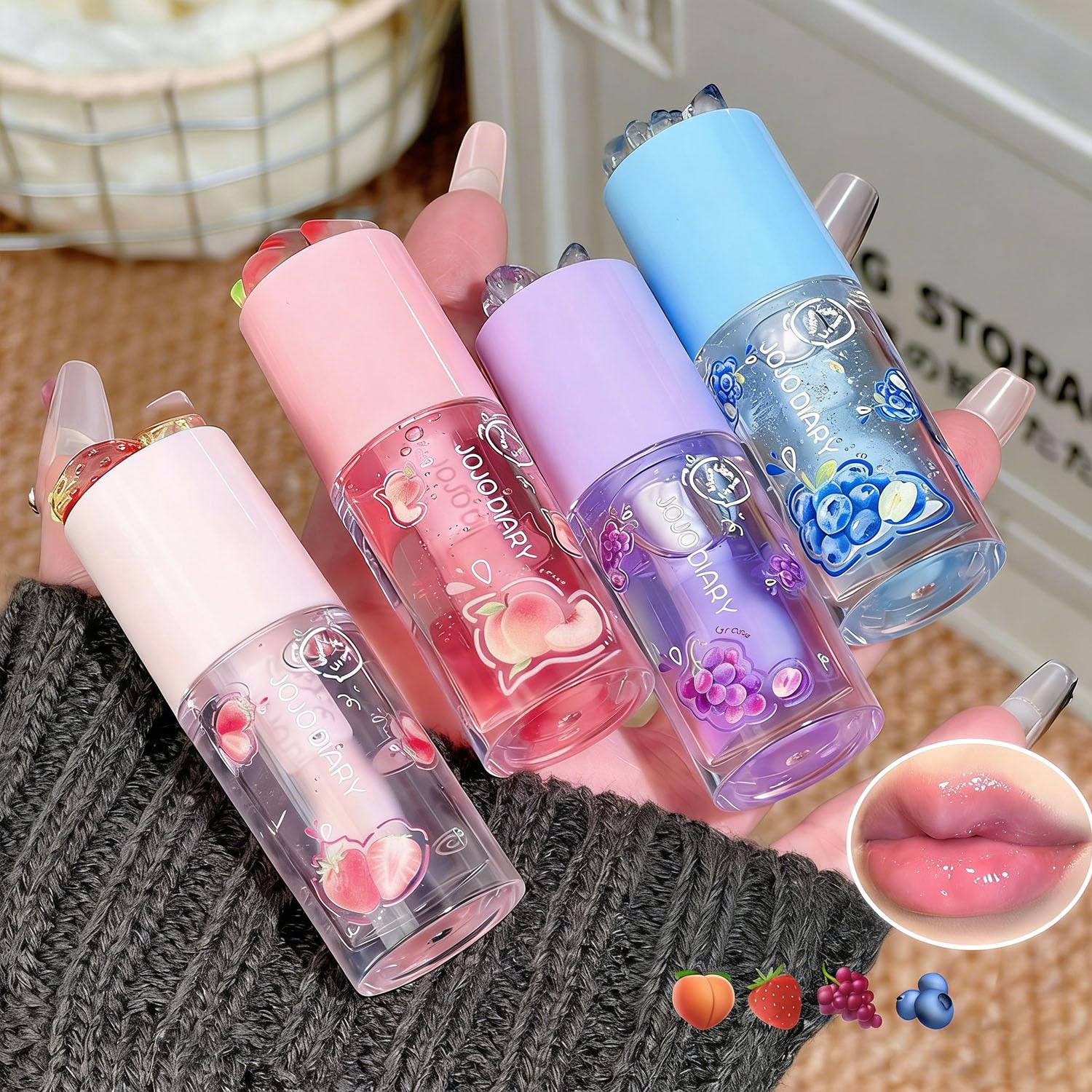 Lot de 4 flacons d'huile à lèvres hydratante avec glaçage aux fruits, gloss à lèvres hydratant à saveur de fruit, baume à lèvres longue durée et kit de soin des lèvres pour filles