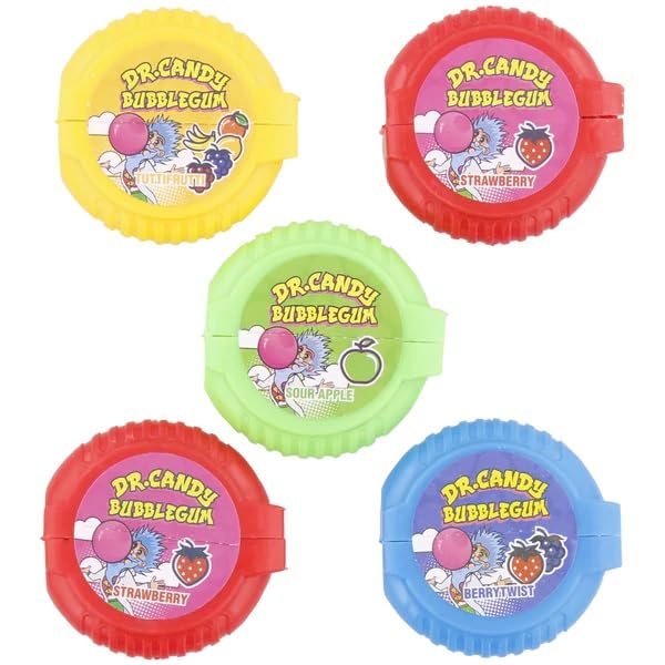 Storage instructions: ? store in a cool, dry place, away from moisture and direct sunlight. Add a touch of fun and flavor to your days with Dr. Candy Bubblegum. Make a splash with the biggest bubbles! ? Benefits: A mix of flavors that will please all bubblegum lovers. Ideal for kids and fun times to share with friends. Perfect for the playground or snack breaks. Key features: Variety of flavors: Tutti-frutti, Tangy Apple, Strawberry, and Sweet Berries. Texture: Soft and easy-to-chew gum, ideal for creating huge bubbles. Packaging: 5 individual 18g packs, for a total of 90g. Convenient box: Made of plastic, easy to carry and reseal. With Dr. Candy Bubblegum, have fun making the biggest bubbles and enjoy a mix of fruity and sweet flavors. Presented in a convenient box, it's perfect for snacks, recess, or taking anywhere!