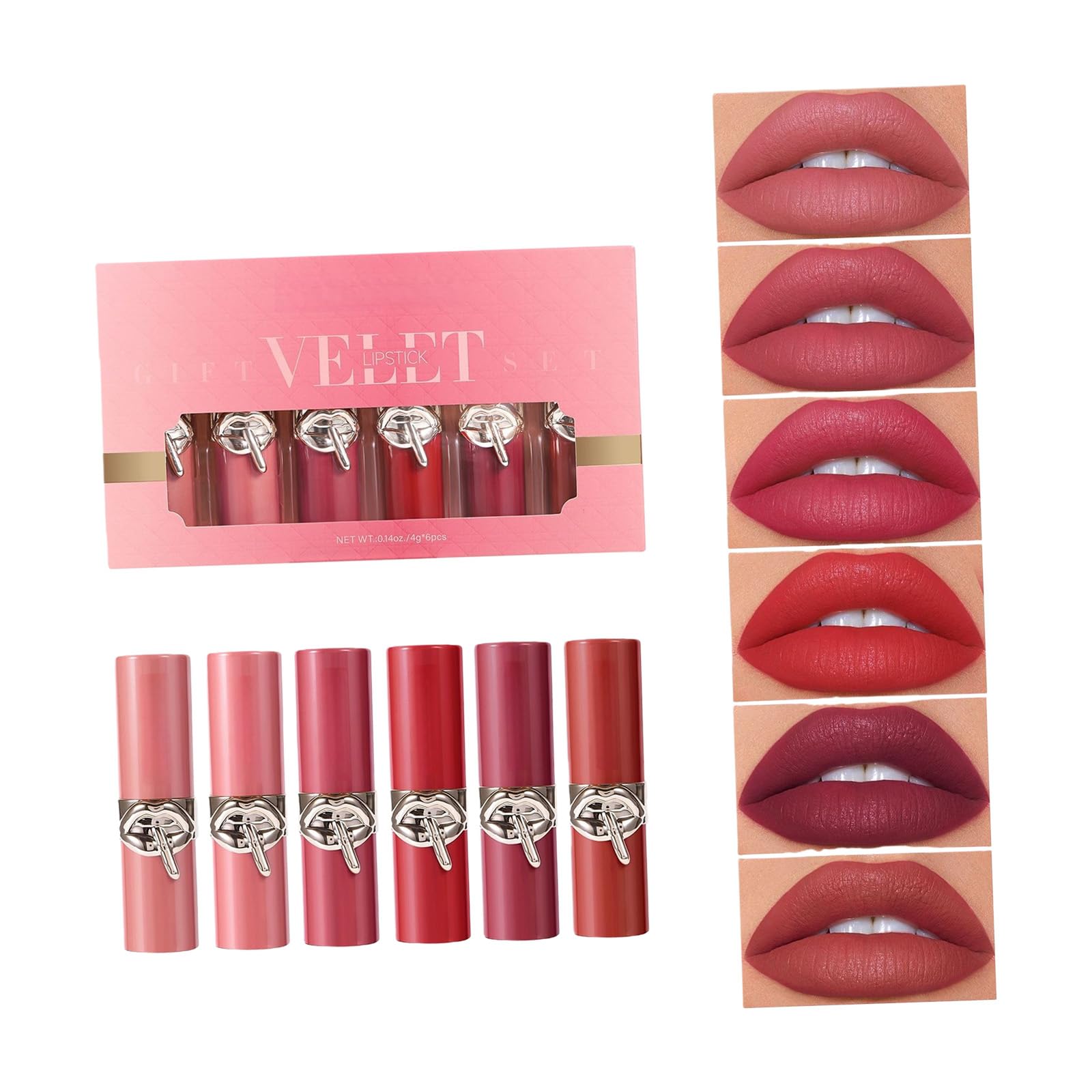 Lot de 6 rouges à lèvres mats crémeux - Application douce - Peau sensible - Formule sûre et douce
