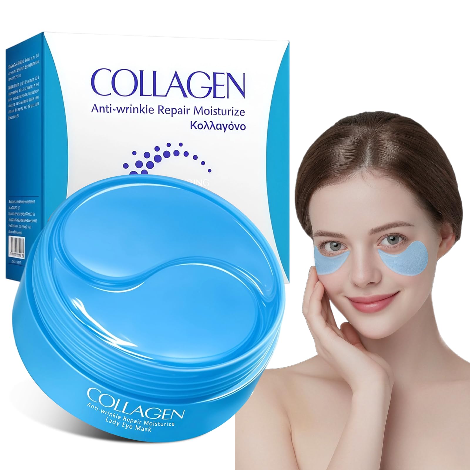 Lot de 60 Patchs Yeux Anti-Cernes, Collagène et Acide Hyaluronique, Patchs Hydrogel pour les Yeux, Réduction des Poches, Rides et Fatigue, Effet Rafraîchissant et Anti-Âge