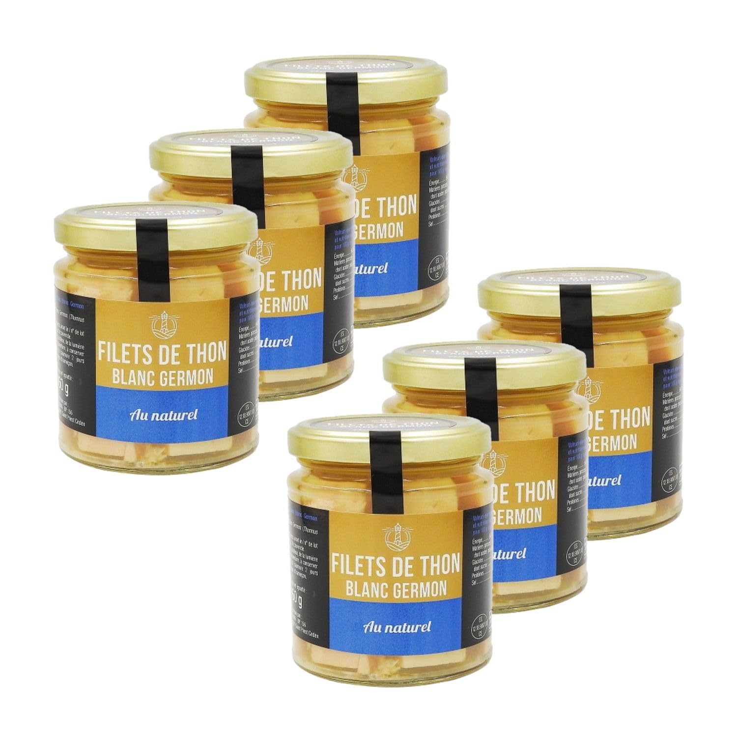This lot contains 6 products described below: The French love tuna: it is rich in omega-3 and protein, and fits perfectly into a healthy diet. Natural albacore tuna offers a delicious taste for all your recipe ideas. Albacore tuna is the top of the range tuna. As a starter, it comes in rillettes, salad or verrines. It can also be cooked in omelettes, gratins, fritters, fish bread, pasta or savory tarts: anything is possible! PNE: 160g Ingredients : White TUNA Albacore, water, salt. Allergens: Fish Storage method: Store at room temperature, away from heat and humidity before opening. Directions for use: Drain the product well before tasting. Product information: Net weight: 250g Origin: Spain Energy: 547KJ 129Kcal Lipids: 2.2g including saturated fatty acids 0.7g Carbohydrates: 0g including sugars 0g Protein: 27g Dietary fiber: NCg Salt: 0.7g Packaging: Glass Jar Full details available on the product packaging. The information on this page is for information purposes only. We encourage you to read the information on the product label, particularly regarding food allergies. INGREDIENTS White TUNA Albacore, water, salt. SAFETY WARNING Full details available on the product packaging. The information on this page is for information purposes only. We encourage you to read the information on the product label, particularly regarding food allergies. Cuisine type: Mediterranean. Gluten-free Lactose-free No added sugar No preservatives No coloring. Rich in omega 3 and protein. Allergen list: Fish. Ingredients list: White tuna Albacore, water, salt. Ce lot contient 6 produits décrits ci-dessous : Les Français raffolent du thon : il est riche en oméga-3 et en protéines, et s'intègre parfaitement dans une alimentation saine. Le thon germon au naturel offre un goût savoureux pour toutes vos idées de recettes. Le thon germon est le haut de gamme des thons. En entrée, il se décline en rillettes, en salade ou en verrines. Il se cuisine aussi dans des omelettes, des gratins, des beignets, du pain de poisson, des pâtes ou des tartes salées : tout est possible ! PNE : 160g Ingrédients : THON blanc Germon, eau, sel. Allergènes : Poisson Mode de conservation : A conserver à température ambiante, à l'abri de la chaleur et de l'humidité avant ouverture. Conseil d'utilisation : Bien égoutter le produit avant la dégustation. Informations produit : Poids net : 250g Origine : Espagne Energie : 547KJ 129Kcal Lipides : 2,2g dont acides gras saturés 0,7g Glucides : 0g dont sucres 0g Protéines : 27g Fibres alimentaires : NCg Sel : 0,7g Emballage : Pot en Verre Détail complet et disponible sur l'emballage du produit. Les informations présentes sur cette page sont à titre indicatif. Nous vous invitons à prendre connaissance des informations sur l'étiquette du produit, en particulier concernant les allergies alimentaires. INGRÉDIENTS THON blanc Germon, eau, sel. AVERTISSEMENT DE SÛRETÉ Détail complet et disponible sur l'emballage du produit. Les informations présentes sur cette page sont à titre indicatif. Nous vous invitons à prendre connaissance des informations sur l'étiquette du produit, en particulier concernant les allergies alimentaires. - Type de cuisine : Méditerranéenne. Sans gluten Sans lactose Sans sucre ajouté Sans conservateur Sans colorant. Riche en oméga 3 et en protéine. Liste des allergènes : Poisson. Liste des ingrédients : THON blanc Germon, eau, sel.