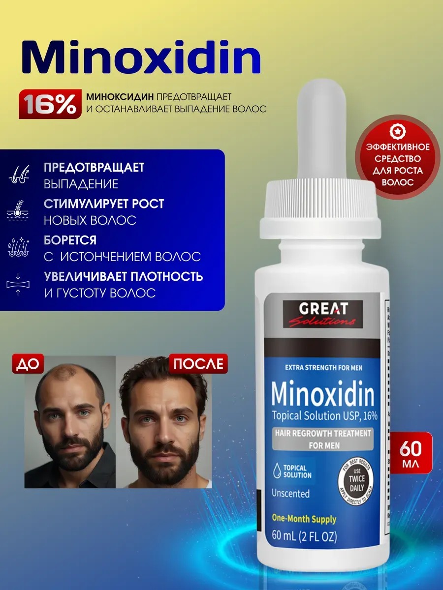 Great Solutions 16% Lotion is an effective hair growth product that nourishes hair follicles and promotes improved hair growth. Most dormant hair follicles enter the growth cycle, resulting in new hair growth, bald spots, and even hair growth. This serum is a high-quality product designed to combat age-related and hereditary hair loss. It is effective against alopecia and slows the process of balding in both women and men. Great Solutions Serum is an alternative to hair growth products such as Kirkland, but it does not contain minoxidil. This lotion helps increase the volume and thickness of eyebrows, beards, and mustaches, strengthens ends, restores roots, improves hair density and thickness, and stimulates beard growth (beard grooming). Great Solutions 16% Lotion works better than hair serum, niacin for hair, or regular Kirkland 5% or iiSolutions 15%. It's great for hair loss and beard and mustache growth. Give a useful men's gift to your husband, son, brother, father, dad, uncle, boyfriend, or man for his birthday! Read the instructions before use. This is not a medicine!