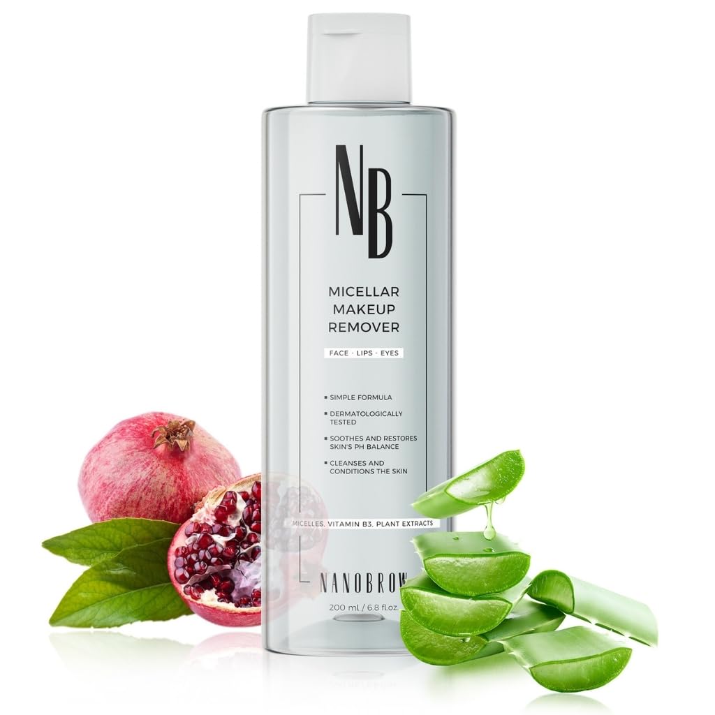 : Effectively removing makeup and purifying your skin is essential in your daily skincare routine. Do you dream of having beautiful skin and a perfect complexion? Discover Nanobrow Micellar Makeup Remover Lotion, which effectively removes all makeup residue, excess sebum, dust, and impurities that accumulate on your face throughout the day. This cosmetic even removes waterproof makeup! This micellar lotion is highly effective for purifying and removing makeup from the face, eyes, and lips. This cosmetic is suitable for all skin types. It does not dry out the skin: it remains perfectly hydrated after makeup removal. Safety Warning: Avoid contact with eyes?POMEGRANATE EXTRACT – This effective substance prevents oxidation and offers regenerative properties. It stimulates collagen production, promotes skin cell regeneration, and allows the skin to resist harmful environmental factors more effectively. ?NIACINAMIDE. This substance gently brightens the skin, makes pores and imperfections less visible, strengthens the skin's hydrolipidic barrier, and reduces shine, redness, and skin irritation. ?SPECTACULAR RESULTS. This cosmetic delivers perfectly purified and visibly hydrated, refreshed, and revitalized skin thanks to its carefully formulated composition. ?IDEAL FOR FACE AND EYE MAKEUP REMOVAL. Nanobrow Micellar Makeup Remover Lotion is highly effective for removing face and eye makeup! It also perfectly removes all traces of Nanobrow cosmetics! ?IDEAL FOR ALL SKIN TYPES. Thanks to its carefully selected ingredients, Nanobrow Makeup Remover Lotion is suitable for mature, acne-prone, oily, and dry skin. ?DESIGNED FOR YOU! Perfectly cleansed and purified skin without excess oil or any feeling of dryness. Nanobrow Micellar Makeup Remover Lotion gently treats the skin while effectively removing impurities!Description du produit Il est essentiel de démaquiller et de purifier efficacement votre peau lors de vos soins cutanés quotidiens. Vous rêvez d'obtenir une peau magnifique et un teint parfait ? Découvrez la lotion Nanobrow Micellar Makeup Remover qui élimine efficacement tous les résidus de maquillage, l'excédent de sébum, la poussière et les impuretés qui s'accumulent sur votre visage tout au long de la journée. Ce cosmétique parvient même à éliminer le maquillage waterproof ! Cette lotion micellaire s'avère très efficace pour purifier et démaquiller le visage, les yeux et les lèvres. Ce cosmétique est adapté pour tous les types de peaux. Il n'assèche pas la peau : elle reste parfaitement hydratée après le démaquillage. Avertissement De Sûreté Éviter le contact avec les yeux?EXTRAIT DE GRENADE – Cette substance efficace prévient l'oxydation et offre des propriétés régénérantes. Elle stimule la production de collagène, favorise la régénération des cellules cutanées et permet à la peau de résister plus efficacement aux facteurs environnementaux nocifs. ?NIACINAMIDE. Cette substance éclaircit la peau en douceur, rend les pores et les imperfections moins visibles, renforce la barrière hydrolipidique de la peau et atténue la brillance, les rougeurs et les irritations cutanées. ?RÉSULTATS SPECTACULAIRES. Ce cosmétique permet d'obtenir une peau parfaitement purifiée et visiblement hydratée, rafraîchie et revitalisée grâce à sa formule soigneusement conçue. ?IDÉALE POUR LE DÉMAQUILLAGE DU VISAGE ET DES YEUX. La lotion Nanobrow Micellar Makeup Remover s'avère très efficace pour démaquiller le visage et les yeux! De plus, elle élimine parfaitement tous les résidus de cosmétiques Nanobrow !. ?IDÉALE POUR TOUS LES TYPES DE PEAUX. Grâce aux ingrédients soigneusement sélectionnés qui figurent dans sa composition, la lotion Nanobrow Makeup Remover est adaptée pour les peaux matures, acnéiques, grasses et sèches. ?CONÇUE POUR VOUS! Une peau parfaitement démaquillée et purifiée sans excédent de sébum et sans aucune sensation de sécheresse. La lotion Nanobrow Micellar Makeup Remover traite la peau en douceur tout en éliminant efficacement les impuretés!.Lotion démaquillante pour le visage et les yeux Nanobrow Micellar Makeup Remover - effet purifiant et revitalisant