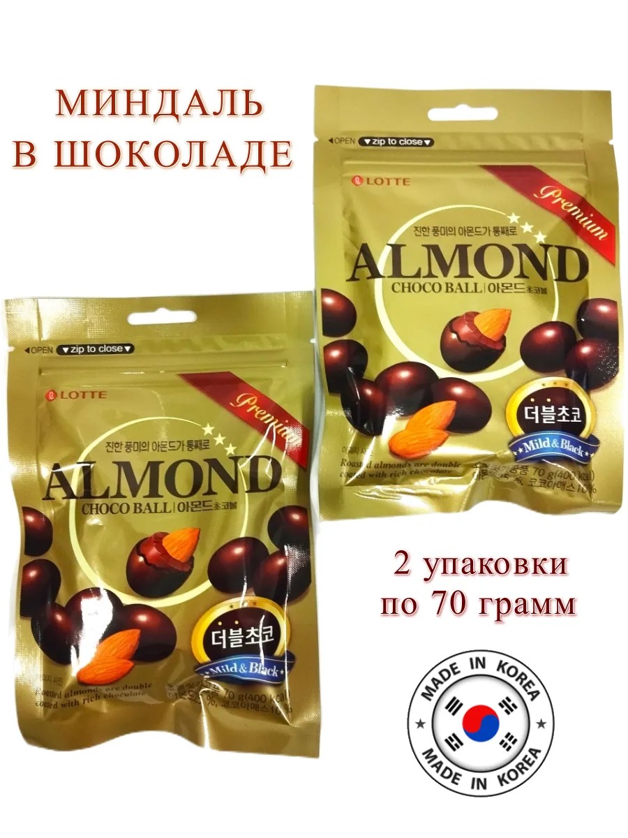 Миндаль в шоколаде Almond Choco Ball - самые популярные шоколадные конфеты от компании LOTTE. Правильно обжаренный миндаль, покрытый двумя слоями высококачественного шоколада - горьким и молочным. Это популярный корейский десерт. Хрустящий жаренный миндаль, в нежнейшем молочном шоколаде - хороший способ поднять настроение. Кроме того, такое сочетание благотворительно влияет на работу мозга, придавая сил и энергии. Прекрасно подойдёт к чаепитию или в подарок друзьям. Азиатские сладости, азиатская еда, продукты из Кореи.