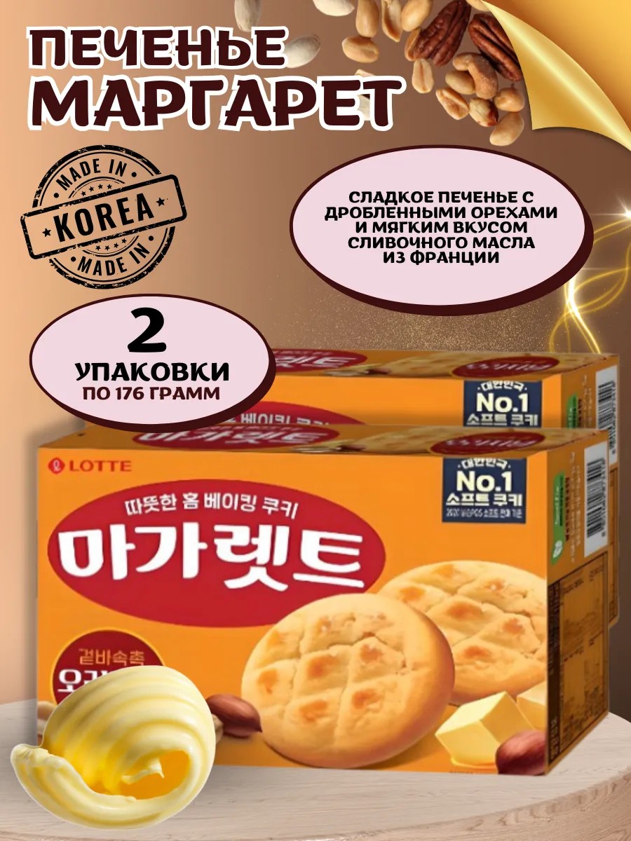 Хрустящее печенье Margaret с дробленным арахисом от Lotte – это идеальное лакомство для любителей сладкого. Хрустящее печенья внутри с кусочками орехов создают неповторимый вкус. В упаковке вы найдете сразу 2 коробочки по 172 грамма печенья. Каждая печнька находится в индивидуальной упаковке, что удобно брать с собой, на пикник с друзьями или для того, чтобы наслаждаться любимым вкусом в любой месте.