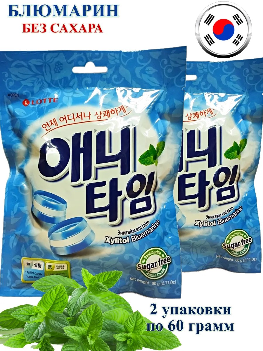 AnyTime Sugar-Free Mint-Flavored Lozenges. Korean sugar-free candies with a bright and rich flavor from Lotte. AnyTime hard candies from South Korea are original candies that will delight even the most seasoned connoisseurs and true connoisseurs with new flavor combinations. AnyTime sugar-free lozenges with the natural sweetener Xylitol are an excellent alternative for those watching their figure! Xylitol is a natural sweetener that does not cause cavities or tooth decay. Using xylitol lozenges daily for children will enhance the protective properties of saliva, normalize the acid-base balance, and strengthen and resilient tooth enamel through natural processes.