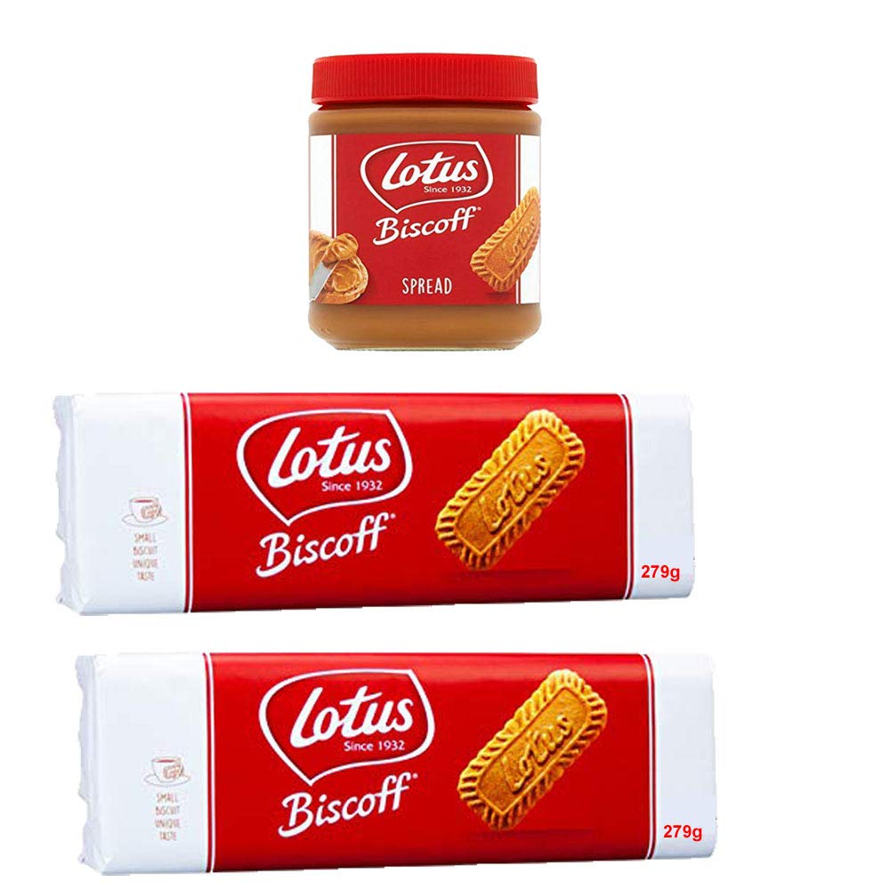 Lotus Biscoff Original Caramelised Biscuits 279g x 2 and Biscoff Spread Jar 200g
