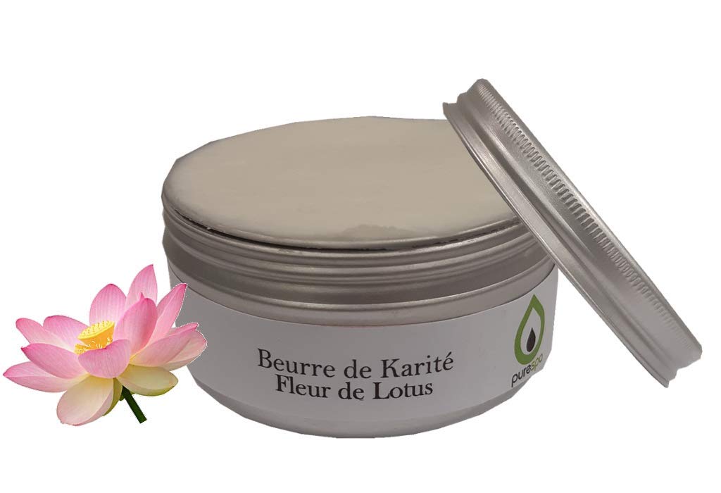 Shea butter. No animal-based ingredients. Paraben, silicone, or paraffin free. Lotus flower scented shea butter. Packaged in an 80g aluminum jar. Made in France. Free shipping on orders over €20.Light and fine texture, deeply moisturizes damaged areas of the face and body. As a hand cream, for the face or as a body treatment. In massage, to prevent stretch marks. Ensures complete rehydration of dry body parts. Caring, revitalizing, antioxidant butter based on shea butter. Beurre de soin à base de karité. Sans composant d'origine animale. Sans paraben, ni silicone, ni paraffine. Beurre de karité parfumé à la fleur de lotus. Conditionné dans un pot de 80g en aluminium Fabriqué en France. Port offert dés 20 euros d'achat.texture légère et fine, hydrate en profondeur sur les zones abîmées du visage et du corps. En crème pour les mains, pour le visage ou en soin du corps,. En massage, afin de prévenir les vergetures,. assure une réhydratation complète des parties du corps asséchées. Beurre de soin, revitalisant, anti oxydant à base de karité,.