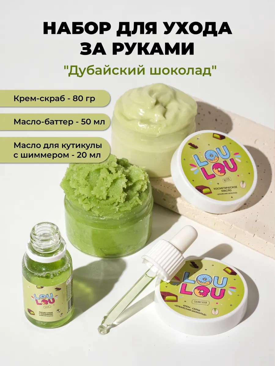 Набор косметики для рук - скраб, масло-баттер и масло для кутикулы с шиммером "Дубайский шоколад" - отличный подарок для девочки, девушки или женщины, подойдет для любого повода и праздника.