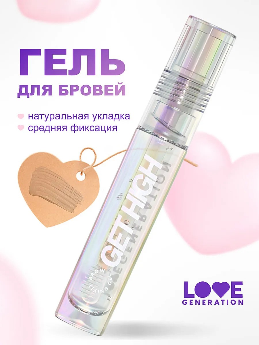 Можно ли насладиться укладкой бровей? Да, если создавать ее с гелем GET HIGH. Мягкой силиконовой щеточкой удобно приподнимать волоски и равномерно наносить средство, расчесывая брови. А упаковка так и притягивает взгляд! Гель для бровей прозрачный Love Generation Get High — идеальное решение для фиксации и укладки бровей. Удобная силиконовая щёточка позволяет равномерно распределить средство по всей длине волосков, придавая им желаемую форму и направление.