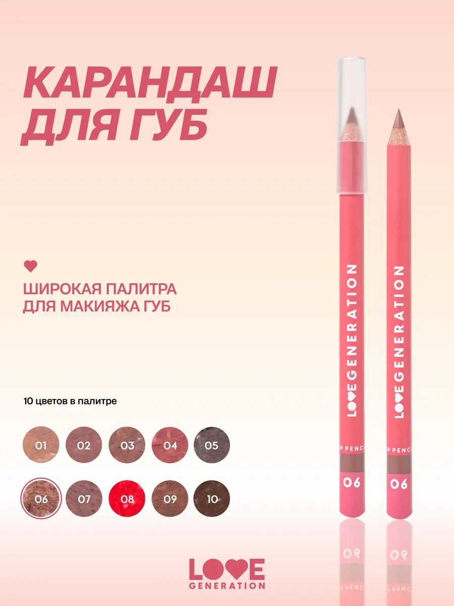 Выходить за границы? Только если совсем чуть-чуть и очень аккуратно — прям как при макияже губ с этим карандашом! Универсальный продукт для подчеркивания твоей красоты с твердым восковым стержнем в деревянном корпусе поможет выделить контур губ ровно и четко. А также создать стойкий макияж с эффектом увеличения губ. В ассортименте представлена палитра из 10 трендовых оттенков, включая базовые, нюдовые (нюд) и цветные, чтобы создать яркий образ и подчеркнуть твою индивидуальность :) СПОСОБ ПРИМЕНЕНИЯ: Наноси карандаш на всю поверхность губ для полноценного макияжа. Можно дополнить его декоративной косметикой: матовой помадой, блеском, бальзамом, маслом для губ или тинтом. Или используй только для эффектного конутра - подводки для губ. Чтобы сделать карандаш более острым, воспользуйся любой косметической точилкой (в набор не входит).
