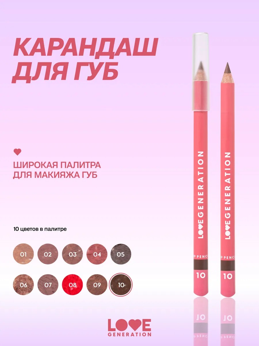 Выходить за границы? Только если совсем чуть-чуть и очень аккуратно — прям как при макияже губ с этим карандашом! Универсальный продукт для подчеркивания твоей красоты с твердым восковым стержнем в деревянном корпусе поможет выделить контур губ ровно и четко. А также создать стойкий макияж с эффектом увеличения губ. В ассортименте представлена палитра из 10 трендовых оттенков, включая базовые, нюдовые (нюд) и цветные, чтобы создать яркий образ и подчеркнуть твою индивидуальность :) СПОСОБ ПРИМЕНЕНИЯ: Наноси карандаш на всю поверхность губ для полноценного макияжа. Можно дополнить его декоративной косметикой: матовой помадой, блеском, бальзамом, маслом для губ или тинтом. Или используй только для эффектного конутра - подводки для губ. Чтобы сделать карандаш более острым, воспользуйся любой косметической точилкой (в набор не входит).
