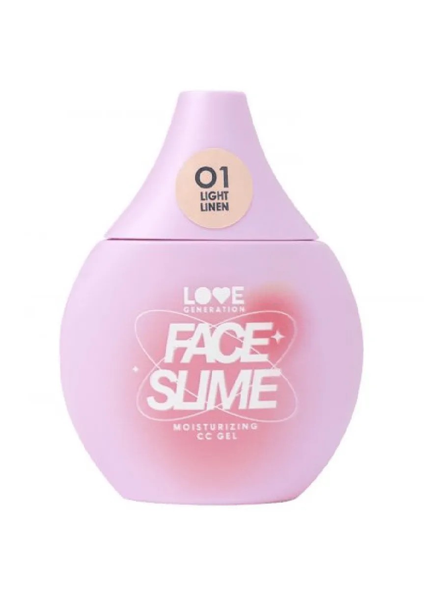 Love Generation, Увлажняющий СС-гель Moisturizing CC Gel "Face Slime" тон 01, 30 мл. СС-гель FACE SLIME уже готов прыгнуть в твою косметичку и помочь отдохнуть от тяжелых текстур с плотным покрытием. Уникальная и единственная в своем роде увлажняющая текстура при нанесении превращается из кремовой в гелеобразную и обволакивает кожу, словно гелевый слайм. СС-гель в двух натуральных оттенках отлично выравнивает тон, создает легкое естественное покрытие с эффектом здоровой холеной кожи, а также обеспечивает уход. Гиалуроновая кислота и витамин Е увлажняют кожу в течение дня, центелла азиатская и экстракт ромашки успокаивают кожу и нейтрализуют воспаления, экстракты горца японского, шлемника байкальского, розмарина, зеленого чая и солодки имеют противовоспалительные свойства и помогают в борьбе с несовершенствами.