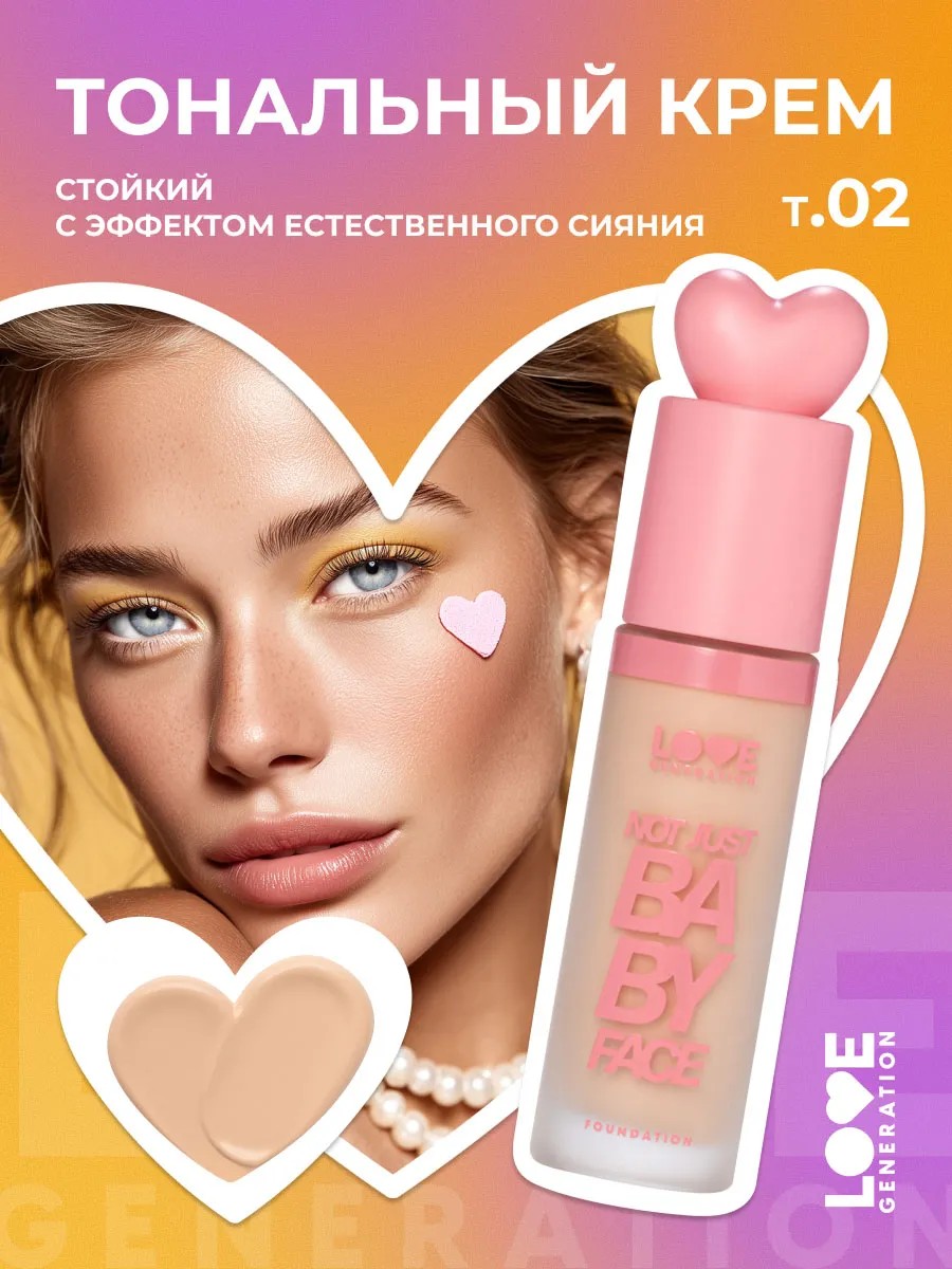 Love Generation Тональный крем с эффектом естественного сияния Not Just Baby Face, тон 02 light beige / светло-бежевый.