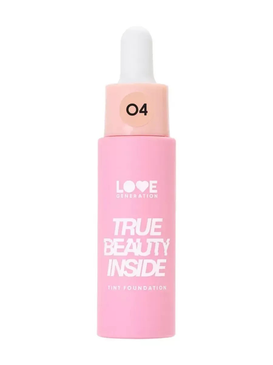 Love Generation True Beauty Inside Tint Foundation, Shade 04, 27 ml. While inner beauty is more important, let's not forget the outer beauty. This long-lasting TRUE BEAUTY INSIDE tint foundation, with its light, liquid texture, perfectly covers imperfections and leaves a powdery finish. The dropper packaging allows you to apply the right amount of product and adjust coverage from sheer to full. Choose from four natural-looking tint shades suitable for all skin types. Foundation is a cosmetic product that helps improve skin tone and balance. This dense foundation, created with high-quality ingredients, is suitable for a variety of skin types. One of the key benefits of foundation for dry skin is its moisturizing formula, which provides essential moisture to the skin, preventing dryness and irritation. This moisturizing foundation is easily absorbed and nourishes the skin for a long time. Our foundations are suitable for a variety of skin types, including oily, dry, combination, and aging, thanks to their moisturizing, caring formulas and antioxidant properties.