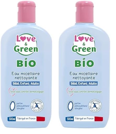 Love & Green - Eau Micellaire Nettoyante Bio 0% 500 ml - Fabriqu en France - Le packaging peut varier (Lot de 2)