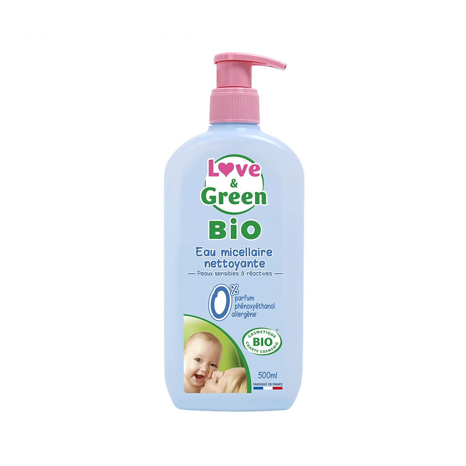 LOVE GREEN Micellar Cleansing Water Sensitive to Reactive Skin Fragrance-Free 500ml A formula that gently cleanses and soothes baby's face, hands, and bottom. Certified organic formula by ECOCERT Greenlife. With organic orange blossom water and organic aloe vera, ingredients known for their soothing properties. Free from any ingredients harmful to baby's skin. 0 perfume, sulfates, polysorbate, allergens, parabens, phenoxyethanol, colorants, PEGs, MIT. The formula is 99 plant-based and 100 biodegradable. 10 of the total ingredients are from organic farming. INDICATIONS Micellar cleansing water for babies' sensitive to reactive skin. INGREDIENTS Aqua, Glycerin, Sodium Benzoate, Decyl Glucoside, Citrus Aurantium Amara Flower Water , Citric Acid, Barbadensis Leaf Extract , Sodium Hydroxide, Potassium Sorbate, Sodium Benzoate. Ingredient from Organic Farming. DIRECTIONS Apply to healthy skin. Avoid contact with eyes. If product gets into the eyes, rinse thoroughly. See moreLove Green Eau micellaire nettoyante Pelle sensibile o reattiva 500mlDESCRIPTION DU PRODUIT DESCRIPTION DU PRODUIT LOVE GREEN Eau micellaire Nettoyante Peaux sensibles à réactives Sans parfum 500ml Une formule qui nettoie et apaise en douceur le visage, les mains et les fesses de bébé. Formule bio certifiée par ECOCERT Greenlife. A l'eau de fleur d'oranger bio et à l'aloe vera bio, ingrédients reconnus pour leurs vertus apaisantes. Sans aucun ingrédient nocif pour la peau de bébé. 0 parfum, sulfates, polysorbate, allergène étiquetable, parabène, phénoxyéthanol, colorant, PEG, MIT. La formule est 99 d'origine végétale et est 100 biodégradable.10 du total des ingrédients sont issus de l'Agriculture Biologique INDICATIONS Eau micellaire nettoyante pour les peaux sensibles à réactives des bébés. INGRÉDIENTS Aqua, Glycerin, Sodium Benzoate, Decyl Glucoside, Citrus Aurantium Amara Flower Water , Citric Acid, Barbadensis Leaf Extract , Sodium Hydroxide, Potassium Sorbate, Sodium Benzoate. Ingrédient issu de l'Agriculture Biologique. MODE D'EMPLOI Appliquer sur peau saine.Éviter le contact avec les yeux. En contact avec les yeux, rincer abondamment. Voir plusSociété Française - Notre service SAV est joignable par téléphone du lundi au vendredi de 9h00 à 13h00. La garantie est de 12 mois. Ce produit est certifié Ecocert. 99 du total est d'origine naturelle. Une formule sans aucun ingrédient agressif pour la peau de bébé. Aucun conservateur indésirable suspecté d'être cancérigène ou perturbateur endocrinien. L'eau micellaire nettoie et apaise en douceur le visage, les mains et les fesses de bébé. Parce que la peau d'un bébé est très fine et très fragile, Love Green s'engage à bannir tout ingrédient suspecté d'avoir le moindre impact sur la santé, et à sélectionner les matières les plus respectueuses de la peau.