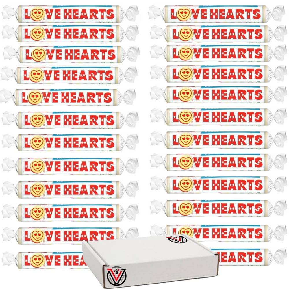 Perfect for sharing with friends. These romantic sweets are each printed with a message or emoji, perfect for telling someone how you feel. Fruit Flavour Fizzy Sweets. 24 Rolls(Full Box). Love Heart Rolls 39g.