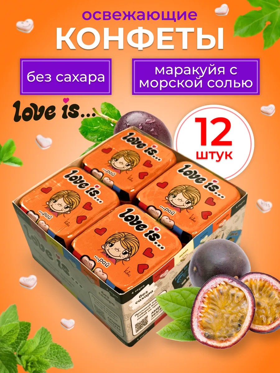 Love Is Конфеты драже без сахара маракуйя 12 штук по 20 грамм
