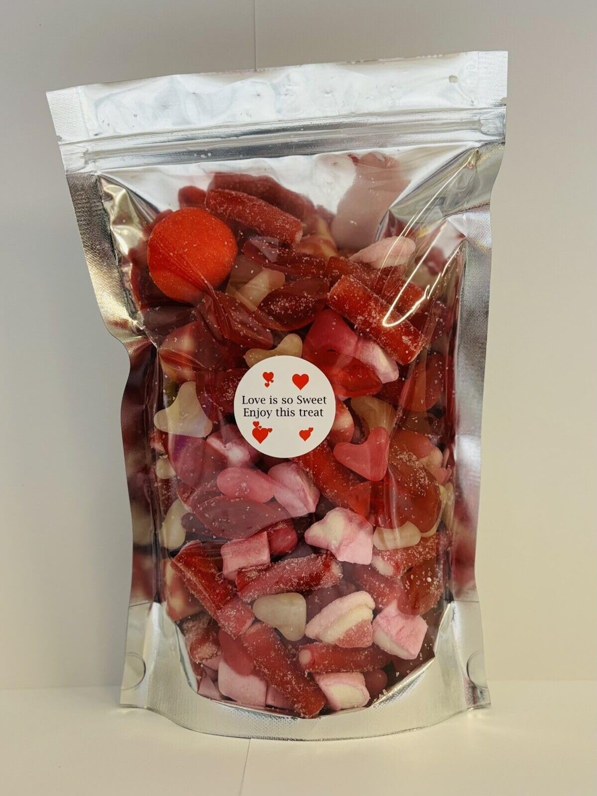 Love is sweet. Can be sent directly to the recipient. All red pink themed with love. The perfect gift for a loved one. Valentines Sweet Pouch.