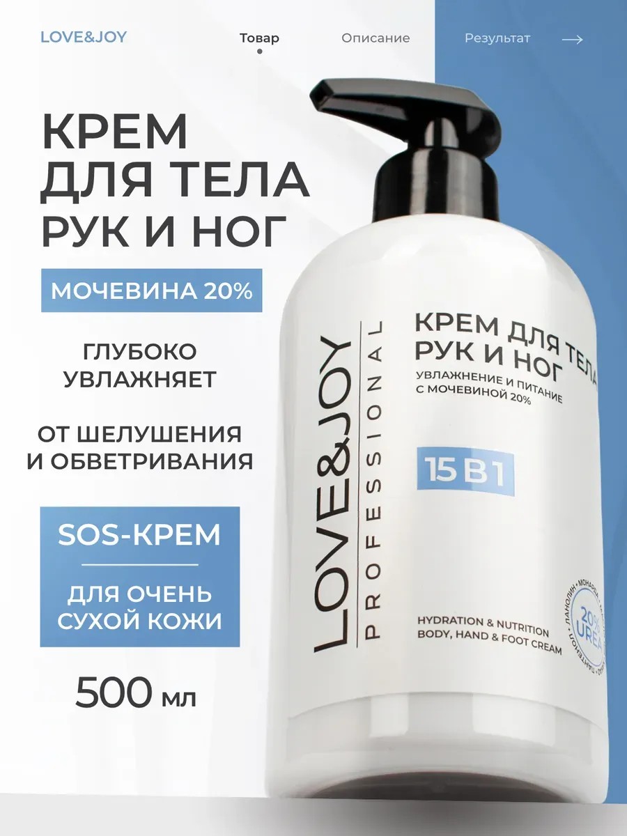 Профессиональный крем тела, рук и ног активно увлажняет , питает , восстанавливает кожу , защищает кожу от шелушения, трещин и обветривания . Увлажняющий крем разработан специально для увлажнения и питания сухой, комбинированной и жирной кожи. Мочевина обновляет клетки кожи , предупреждает появление микротравм и трещин, оказывает длительное увлажняющее воздействие. Какао масло увлажняет и питает , оказывает противовоспалительное действие , убирает шелушения и заживляет , регулирует метаболизм в клетках. Пантенол способствует смягчению , увлажнению и ускоряет процессы заживления. Ланолин способствует заживлению кожных покровов , смягчает кутикулу и предупреждает появление заусенцев. Крем женский и мужской обладает легкой и нежной текстурой, которая мгновенно впитывается, не оставляя липкого слоя на коже. Интенсивная формула крема позволяет ему интенсивно питать и увлажнять кожу на протяжении всего дня. После его использования, ваша кожа станет более упругой, эластичной и сияющей. Крем имеет приятный парфюмированный аромат, который дарит ощущение свежести и комфорта. Это натуральный косметический продукт, который придаст вашей коже увлажнение, питание и упругость. Его преимущества включают улучшение состояния кожи, устранение шелушений и раздражений, заживление мелких царапин и трещин, а также повышение упругости и эластичности кожи. Косметика от LOVE&JOY станет отличным подарком на 8 марта, день рождения или Новый год маме , девушке, подруге, бабушке, любимой девушке или жене.