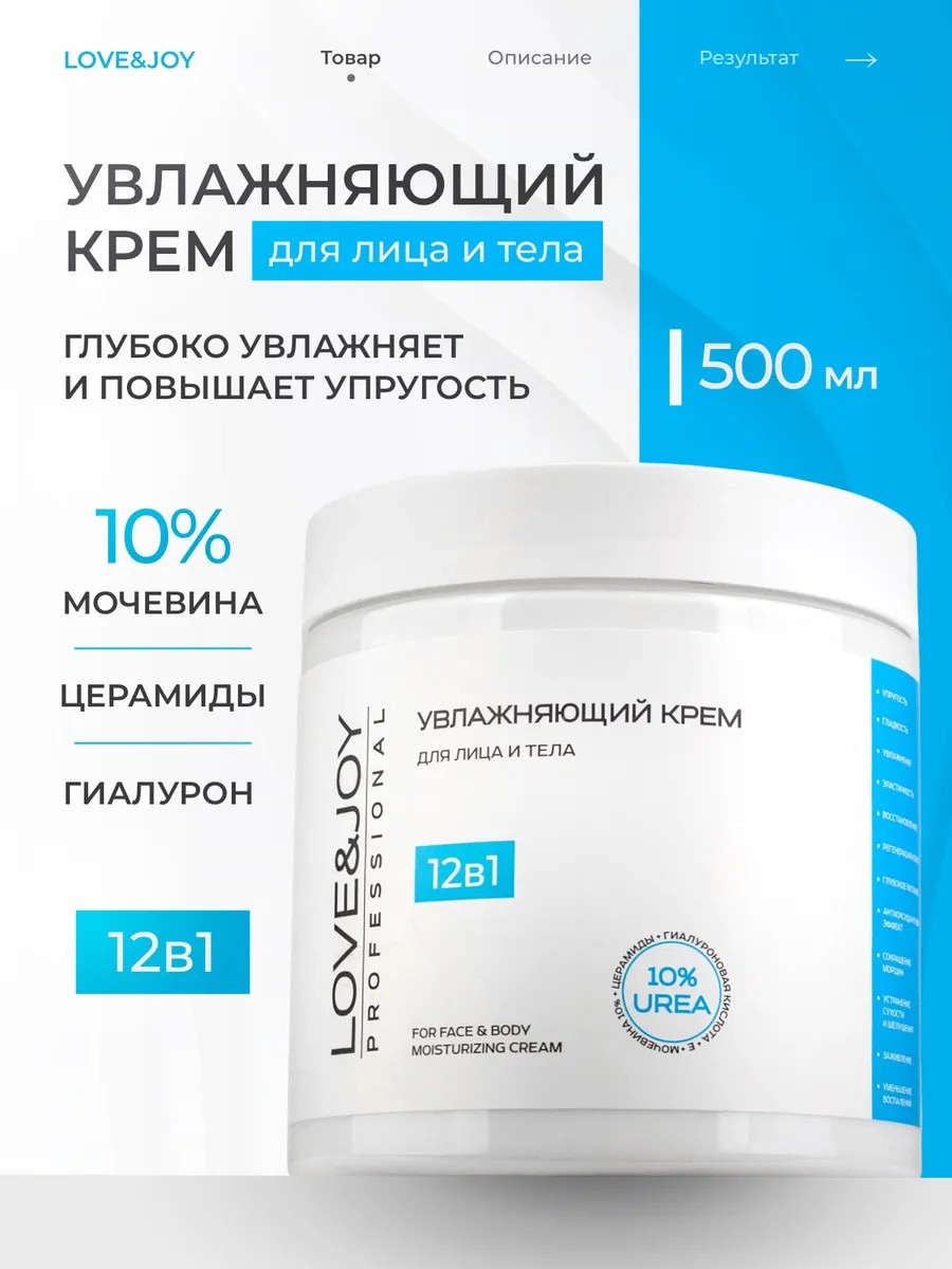 Увлажняющий крем для лица с гиалуроновой кислотой , мочевиной и церамидами обеспечит эффективный профессиональный уход для всех типов кожи . Гипоаллергенная формула крема оказывает самое мягкое воздействие. Нежнейшая текстура мгновенно впитывается в кожу, не оставляя после себя ощущения липкости, не пачкает одежду. Такой уход за лицом и телом обеспечивает экстренное восстановление, укрепление защитного барьера, глубоко питает и увлажняет кожу. Средство для ухода за лицом и телом способствует разглаживанию мимических и глубоких морщин, заживлению повреждений и устранению сухости, раздражений и шелушений на лице и теле . Питательный крем не закупоривает поры и снижает шелушения. Церамиды удерживают влагу в коже, сохраняя ее увлажненность и гладкость. Гиалуроновая кислота восстанавливает естественный водный баланс кожи, оказывая интенсивное увлажнение. Мочевина увлажняет и обновляет кожу , предотвращает появление микротравм и трещин. Органические масла кокоса, миндаля и оливы смягчают и питают, делают кожу нежной и гладкой и разглаживают мелкие морщинки. Витамин Е обеспечивает питание , увлажнение и мощный антиоксидантный эффект. Восстанавливающий и увлажняющий крем для всех типов кожи- это то, что ваша кожа заслуживает! А натуральный состав подойдет даже для самой чувствительной кожи. Наша продукция – это отличный подарок маме и сестре, подруге или учителю на новый год, день рождения, 8 марта и другие праздники. LOVE&JOY – это высококачественная уходовая косметика. Натуральная красота – это просто вместе с LOVE&JOY!