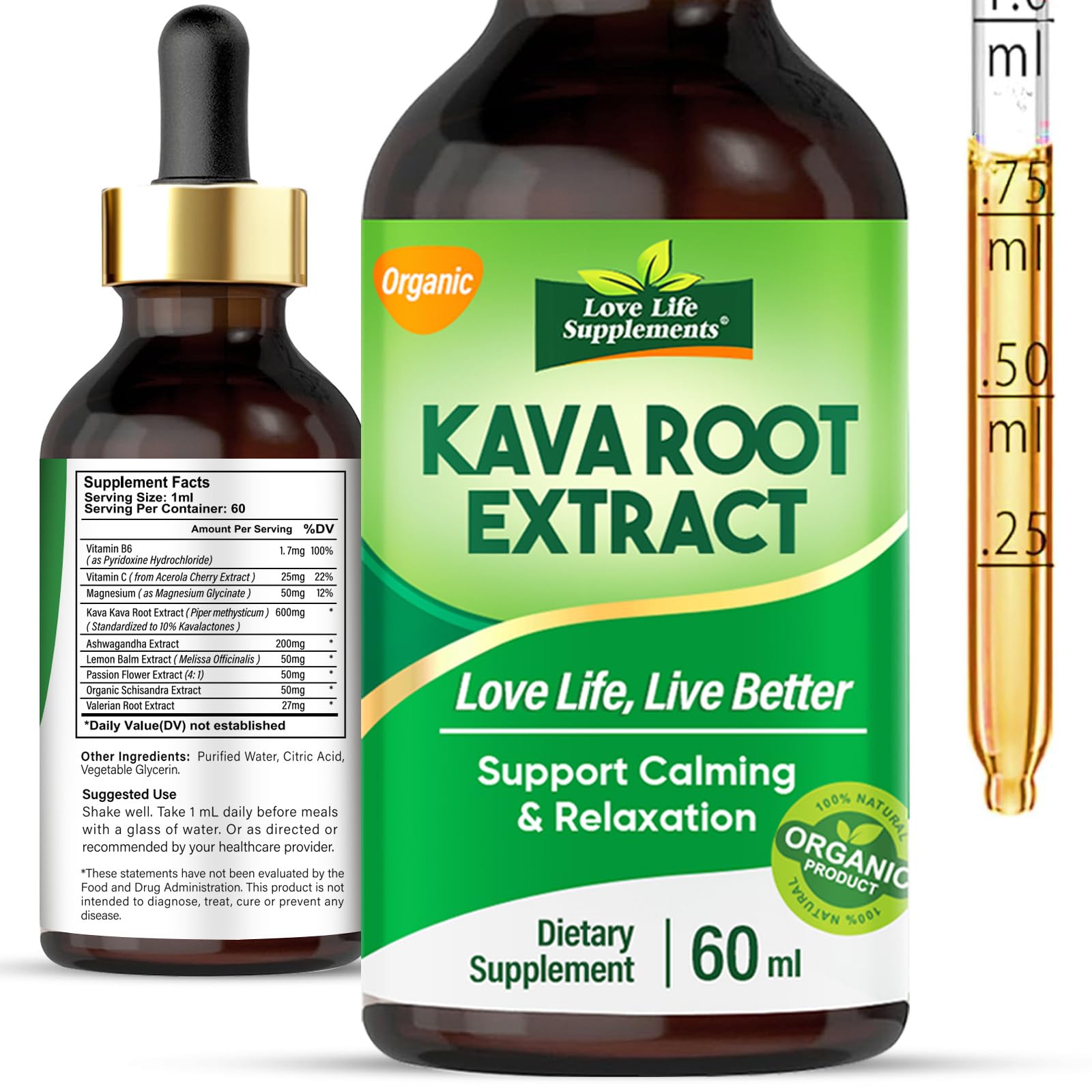 Love Life Supplements Kava Kava Root Extract Supplement High Concentration Kava Extract Drops for Relaxation Vegan Non-GMO Gentle Formula for Sleep 2 Fl Oz