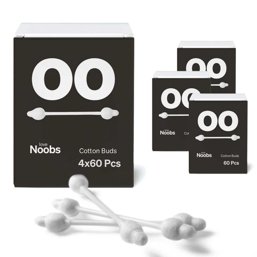 FAMILY PACK VALUE: Stock up with 240 cotton buds in our family-sized packaging. Whether it's everyday cleaning or special care, our baby q tip collection ensures you're always prepared. Plus, our packaging is perfect for convenient storage of unused baby safety cotton swabs. 100 BIODEGRADABLE BABY COTTON BUDS: Gentle on your baby, gentle on our Earth. Crafted from organic cotton and paper, even the box is eco-friendly. Choose the best for your little one, choose sustainability. SUSTAINABLE ECO-CONSCIOUS: Minimize environmental impact with our plastic-free safety cotton qtips. Crafted with biodegradable paper sticks, these baby cotton buds for ears are a perfect choice for parents seeking eco-friendly infant cotton swabs solutions. PURE ORGANIC COMFORT: Elevate your baby's hygiene with our 100 organic baby cotton q tips. Every baby cotton bud we produce meets GOTS Organic Certification standards, providing the gentlest touch, especially for those delicate baby ears. SAFETY FIRST: Love Noobs baby safety cotton buds offer the utmost protection for tiny ears. Specially designed with a thicker end, these cotton baby earbuds are perfect for gentle cleaning, ensuring no over-insertion hazards.