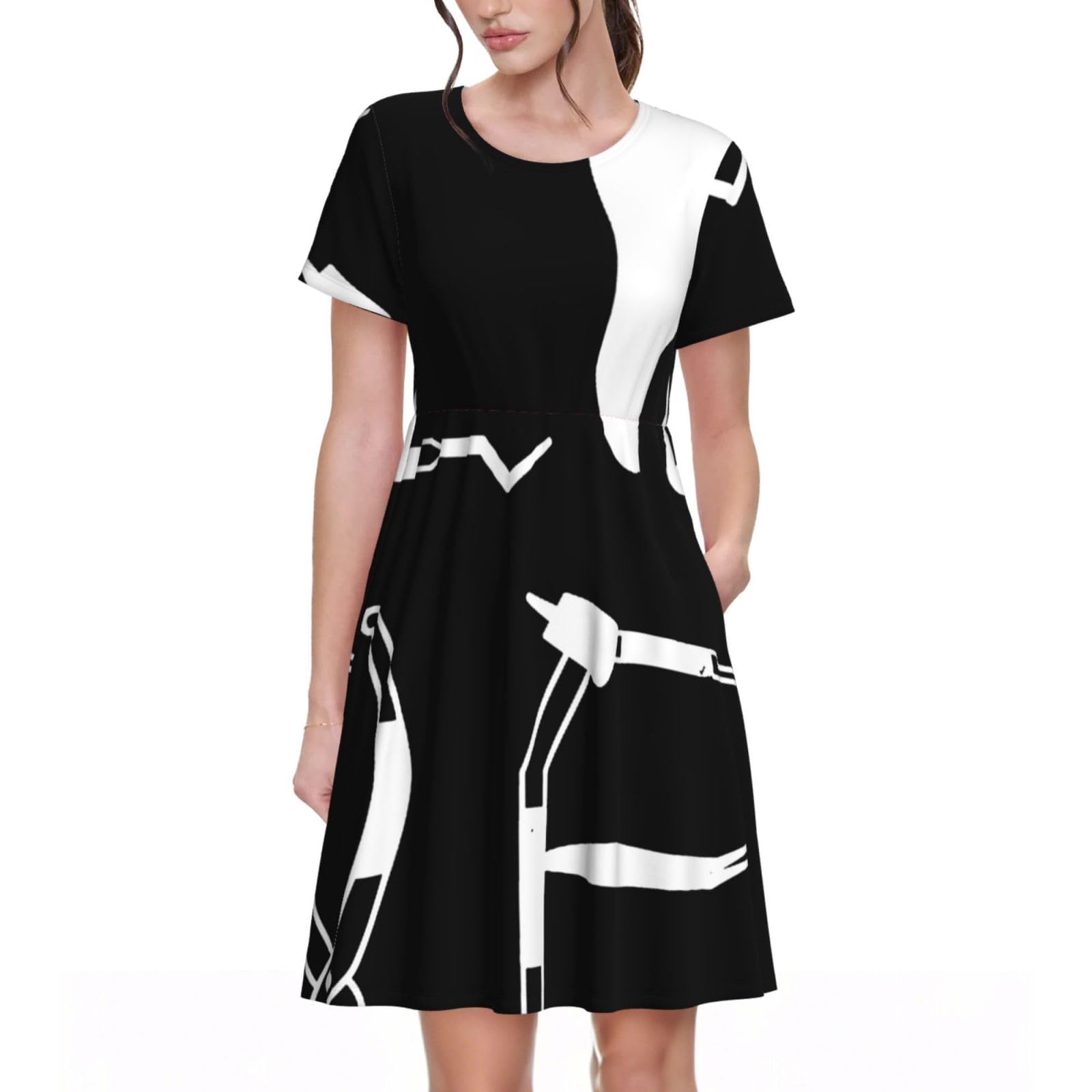 Love Tooth Dentist Dental Tools Women's Short Sleeved Round Neck Wedding Dress for Guests Black Small