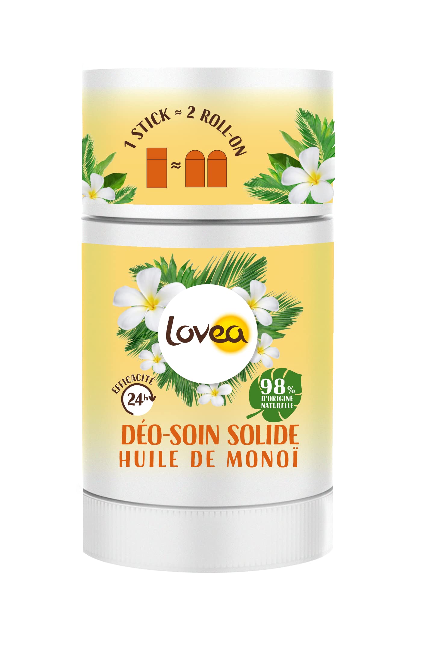 LOVEA - Déo-Soin Solide - Déodorant - Huile de Monoï - Efficacité 24h - 98 d'Origine Naturelle - Sans Alcool - Vegan - Fabriqué en France - 50 g